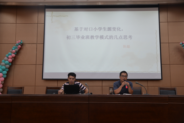 谢海泓书记讲话 随后,黄晓明主任、陈锋副主任、陈超副主任分别就德育管理、新高考改革、初三教学管理等方面向大会汇报了过去一年的经验总结和新学年工作思路;潘希段长、赵晖段长、陈季娜、汪芳、郭妮亚等班主任就年段班级管理和教师业务成长等方面做了经验交流。代表们的发言注重立足岗位实际,颇具借鉴意义,赢得与会人员肯定,为大会取得实效奠定基础。
