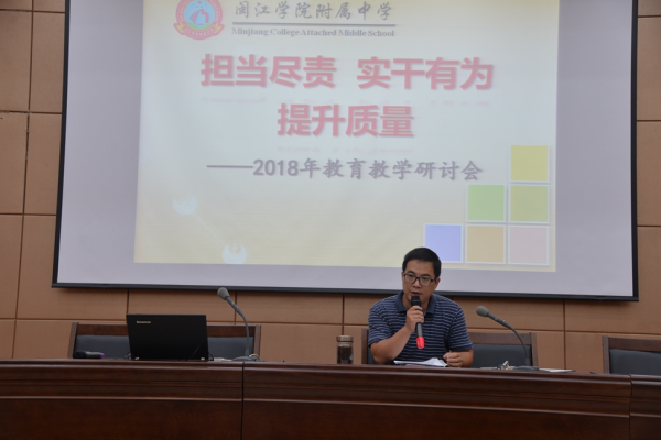 俞勇校长讲话 本次教育教学研讨会回顾过去、展望未来,参会教师本着主人翁的态度积极参加研讨、交流经验,为学校发展献言献策。研讨会成功召开并取得良好实效。在新学年工作中全校师生将认真领会贯彻落实本次研讨会精神,为把闽江学院附中打造成高质量、有特色、现代化的品牌学校而奋斗! |