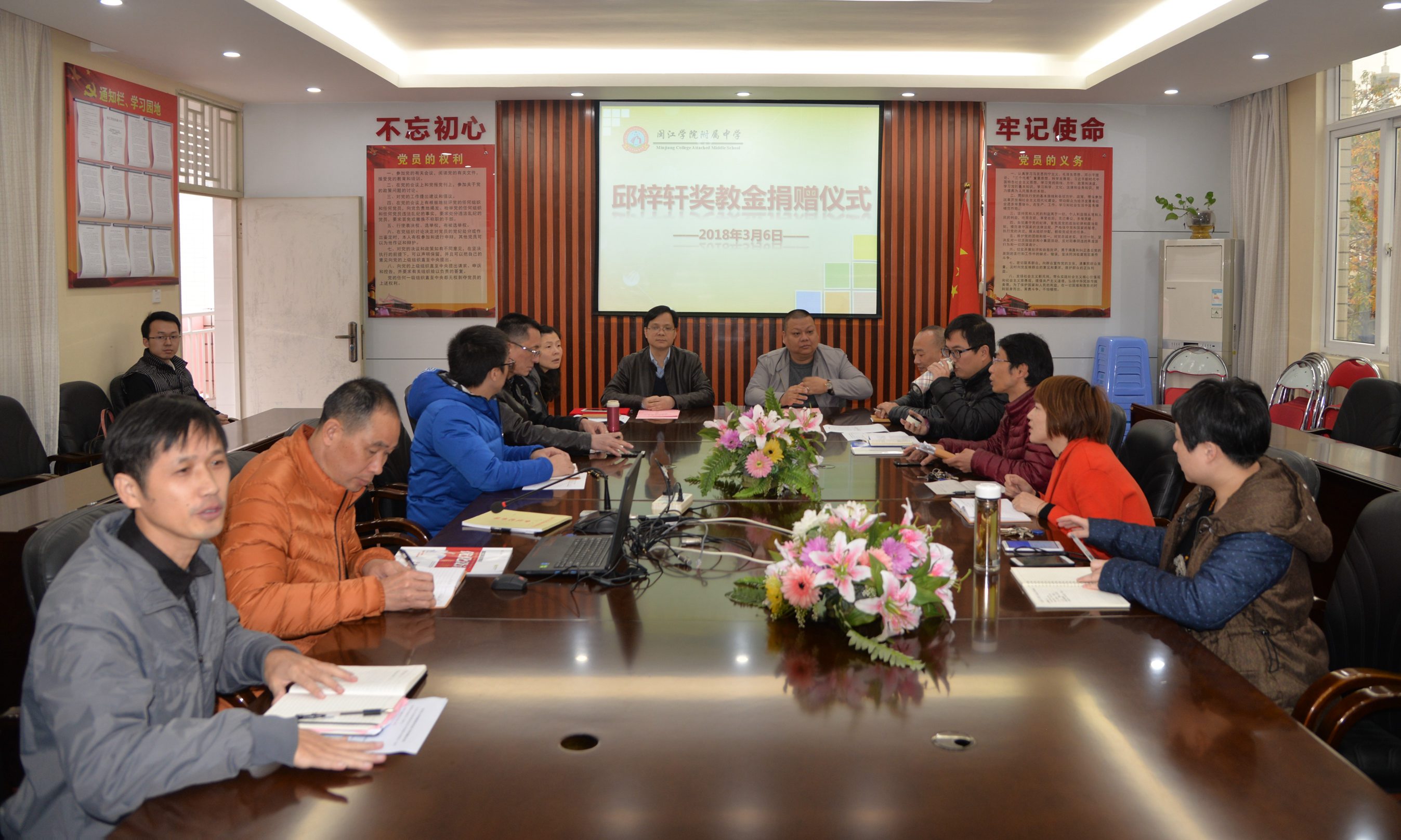 发表时间:2018-03-08 15:35 情系教育 爱心奉献 ——福建中科恩光光电科技有限公司向我校捐赠奖教金 3月6日上午,福建中科恩光光电科技有限公司向我校捐赠奖教金,双方在我校正兴楼六楼会议室举行捐赠仪式并签订捐赠协议。福建中科恩光光电科技有限公司董事长邱仁强先生、我校领导班子及全体中层干部参加仪式。