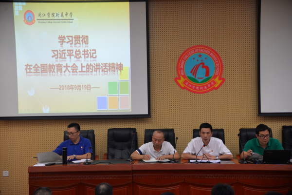 9月19日下午,我校在综合楼二楼报告厅召开“学习贯彻习近平总书记在全国教育大会上的讲话精神”专题部署大会,全体党员教师参加会议。