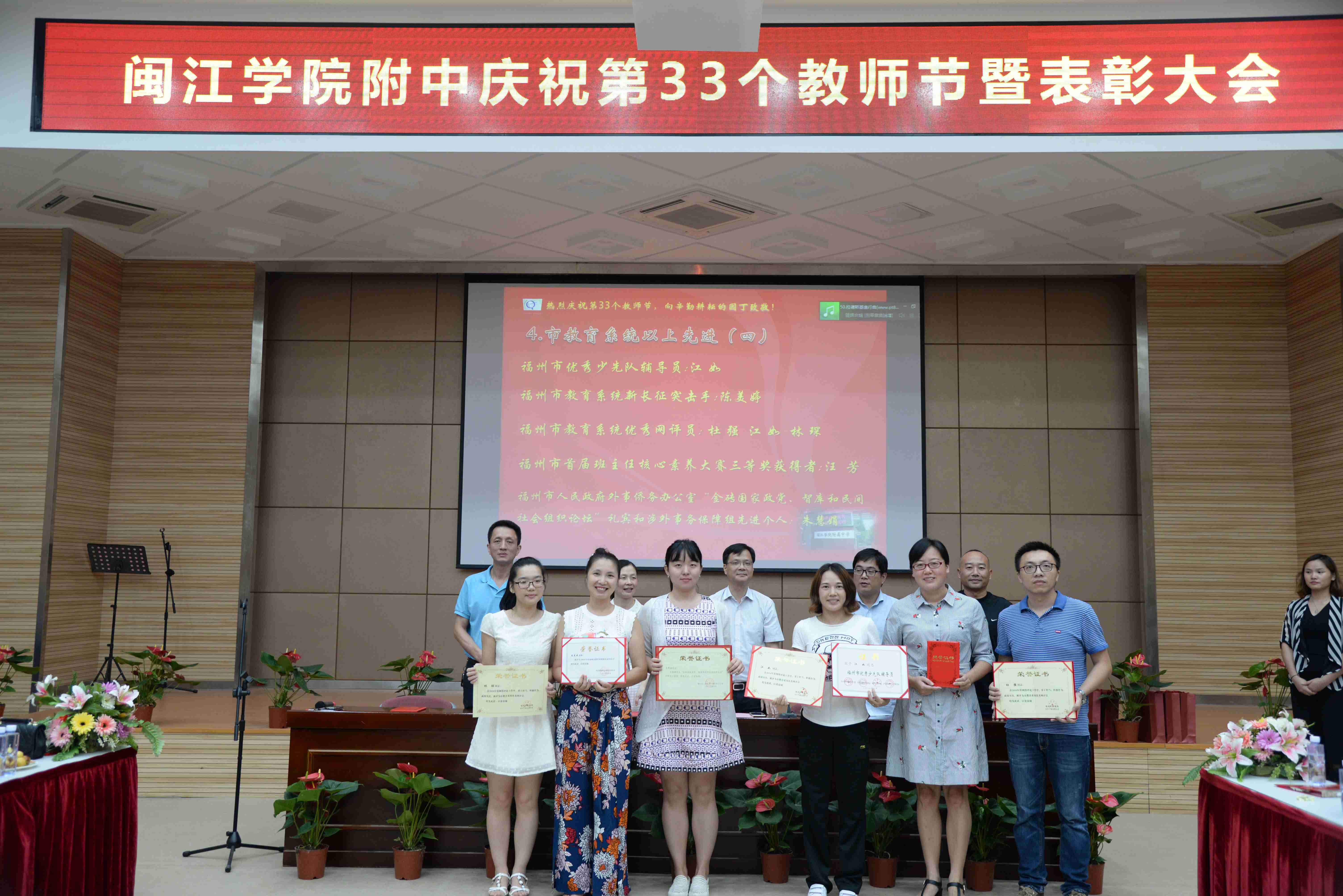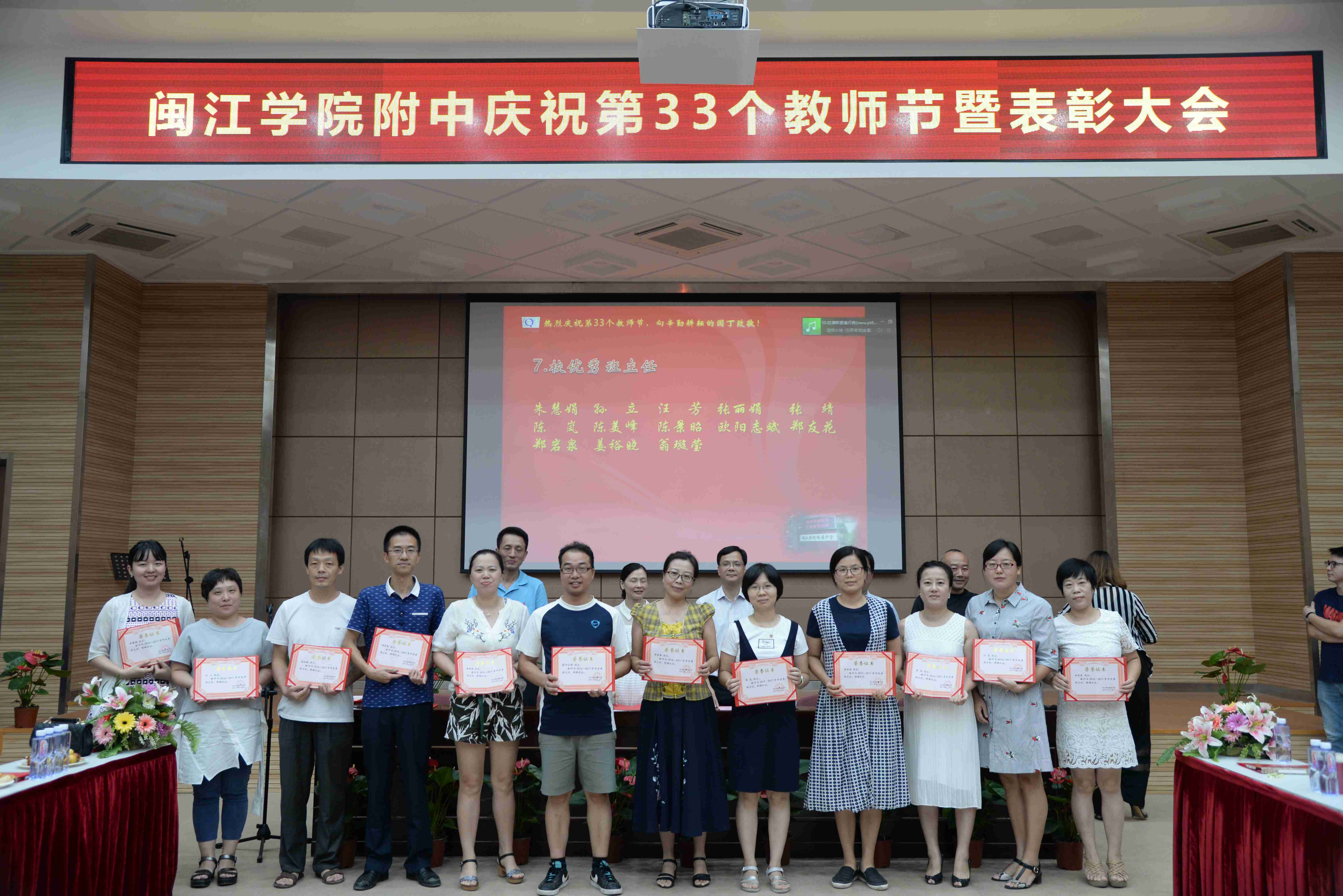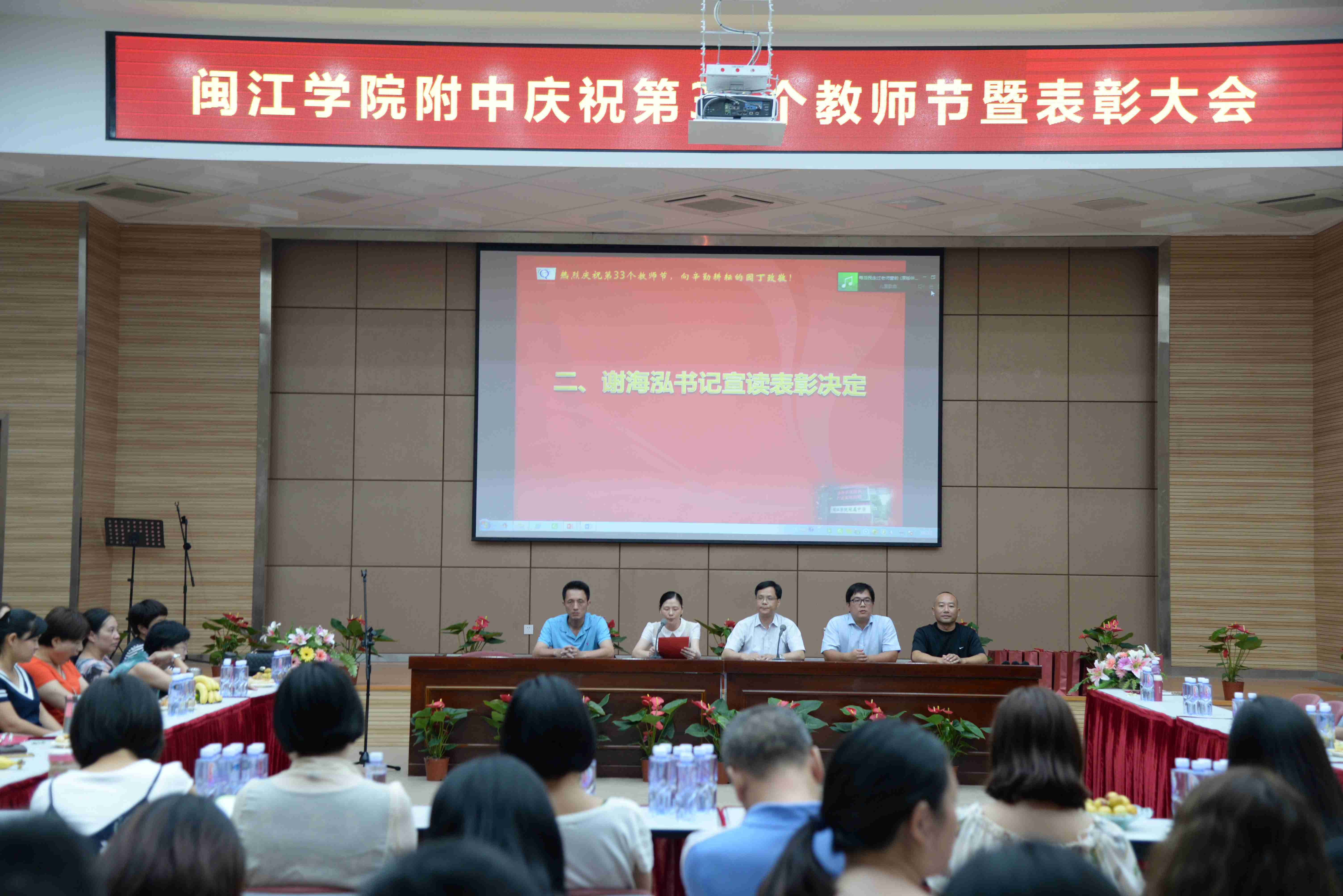 9月8日下午,我校在正兴楼多功能厅召开庆祝第33个教师节表彰大会,全体教职工与会。