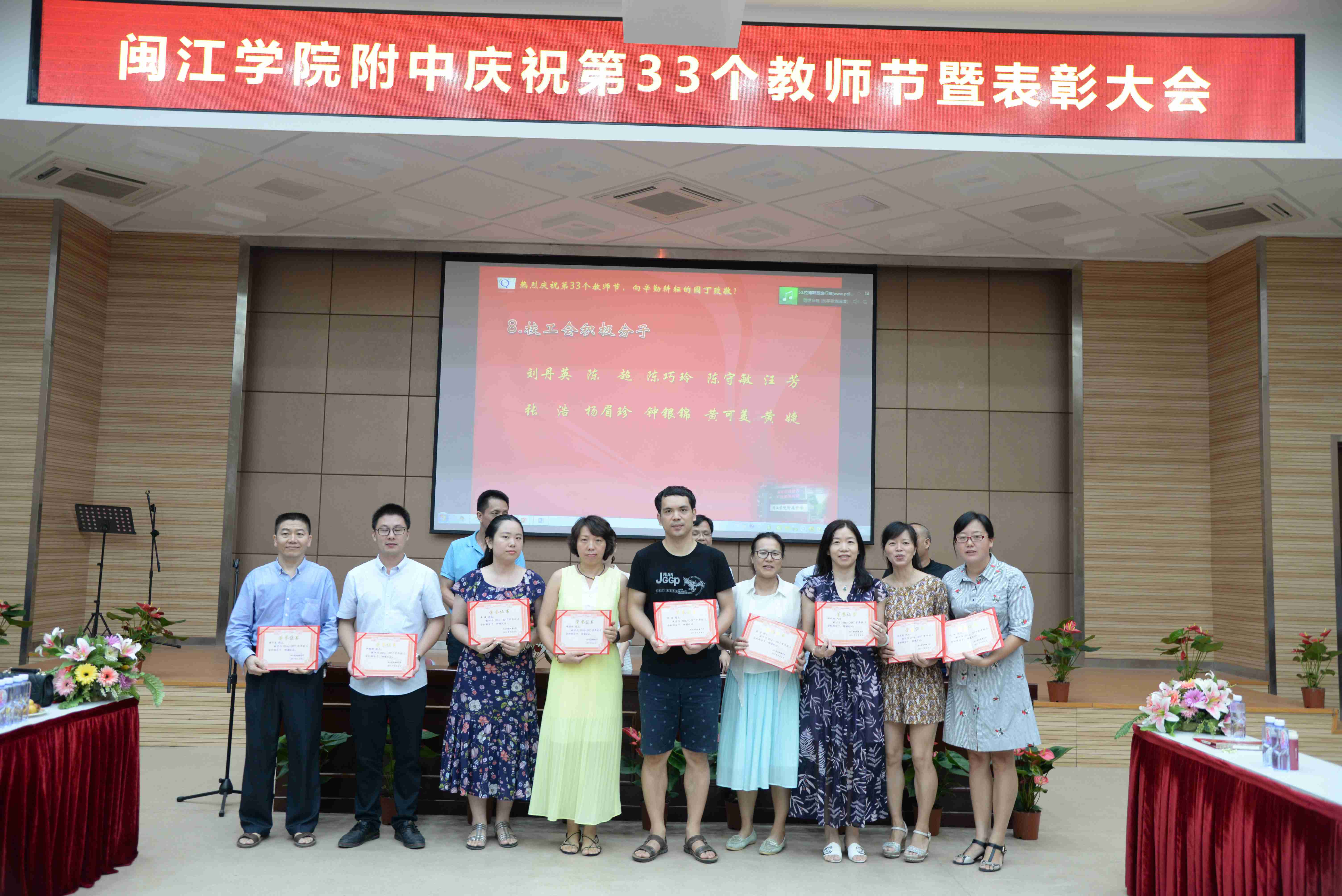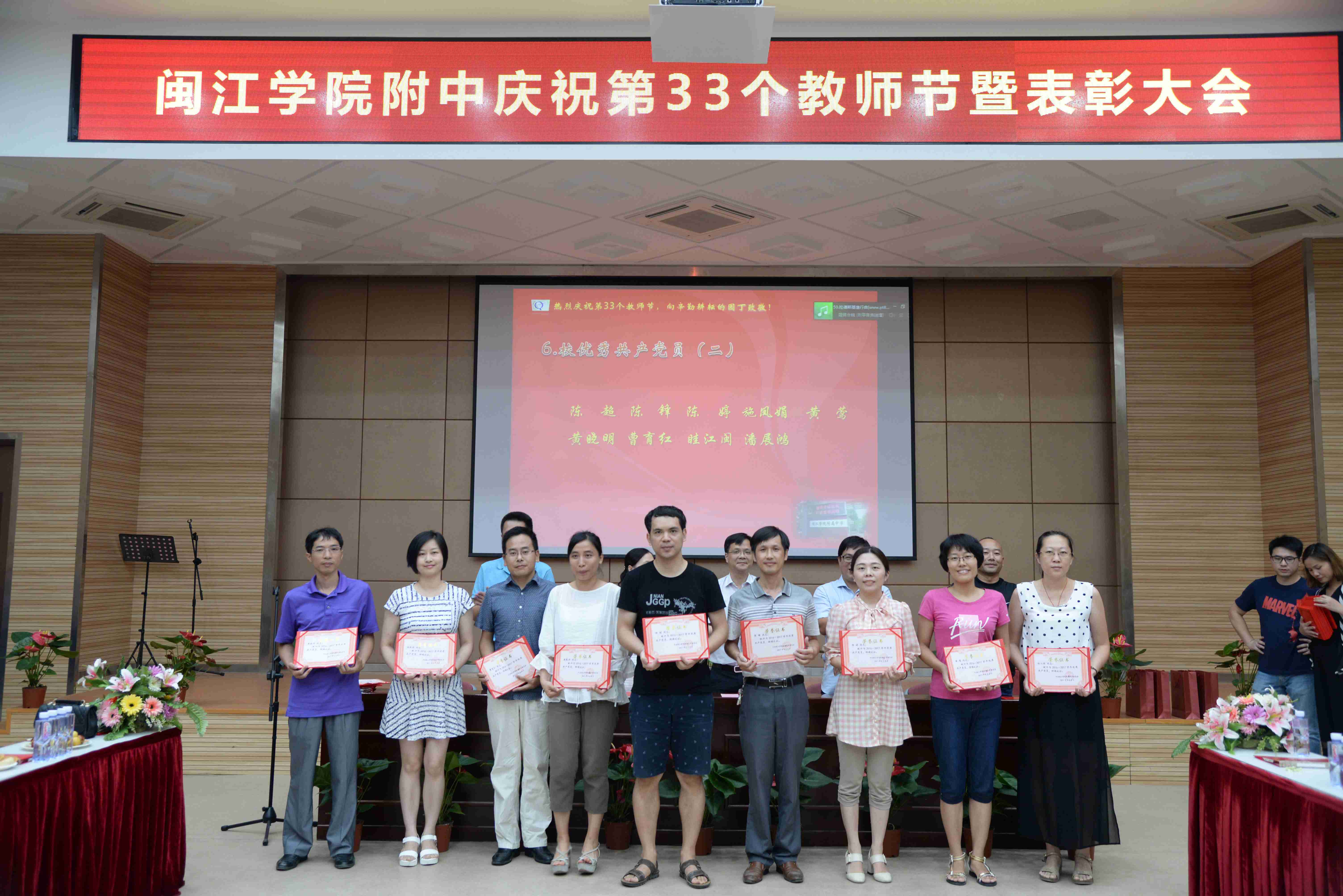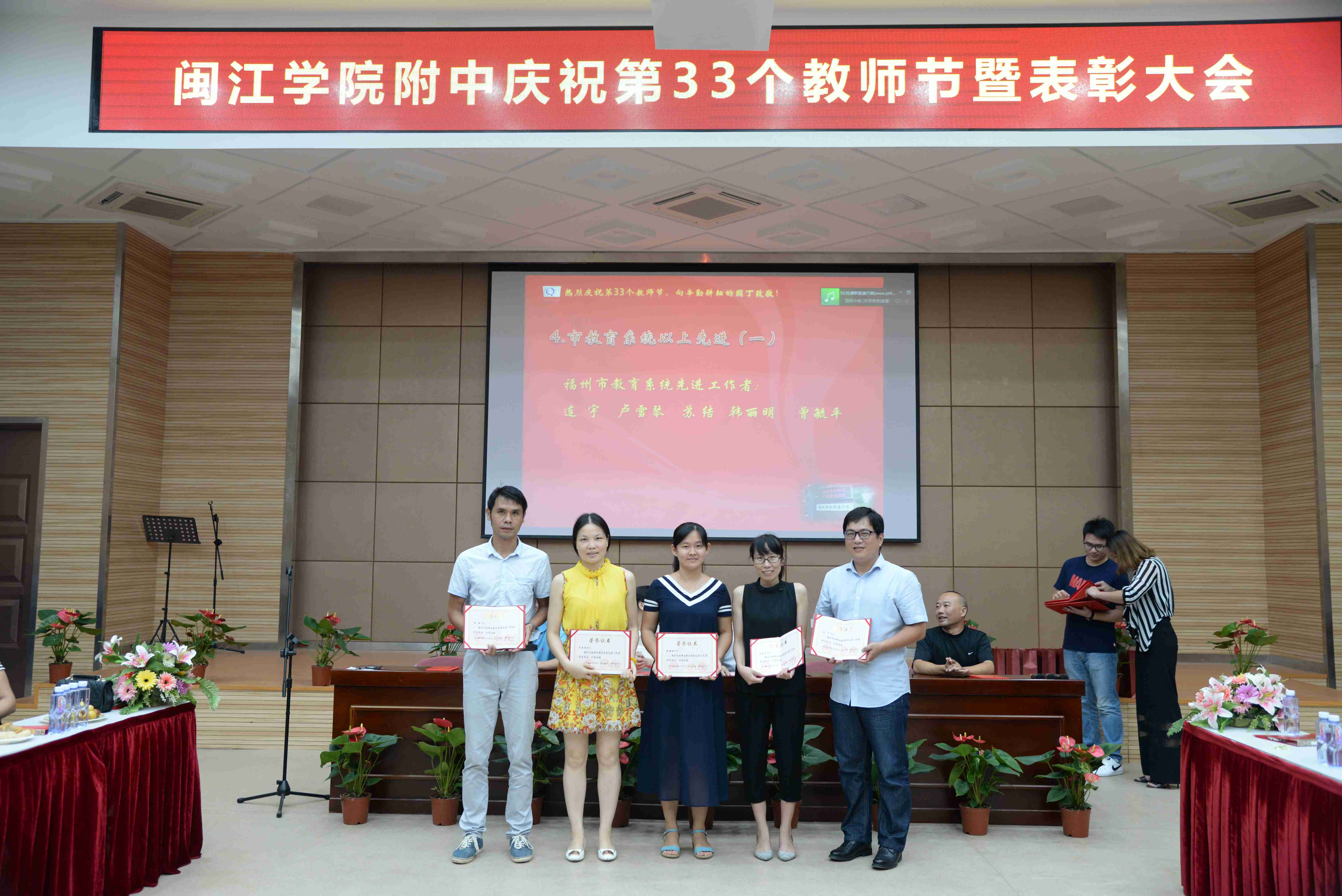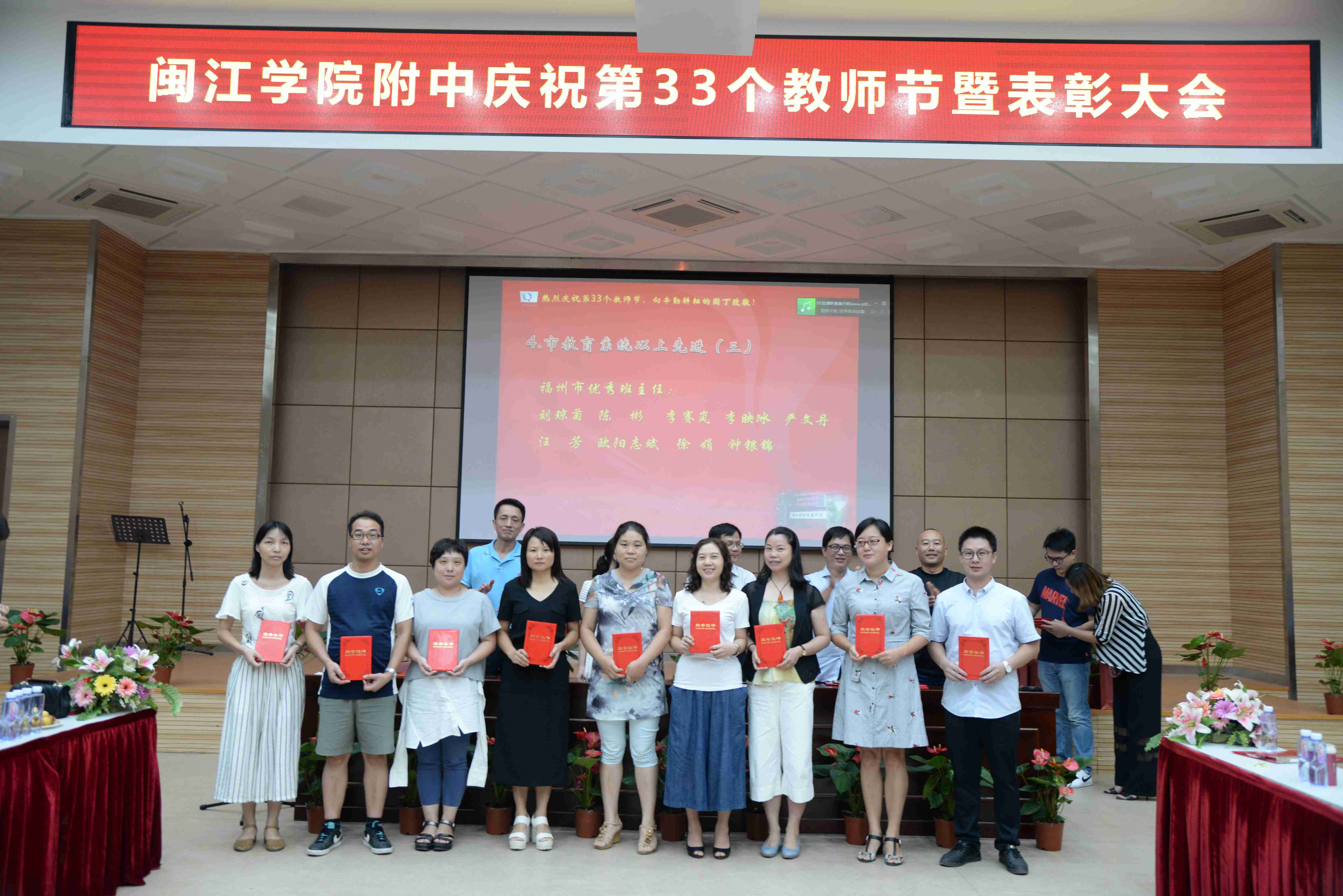 9月8日下午,我校在正兴楼多功能厅召开庆祝第33个教师节表彰大会,全体教职工与会。