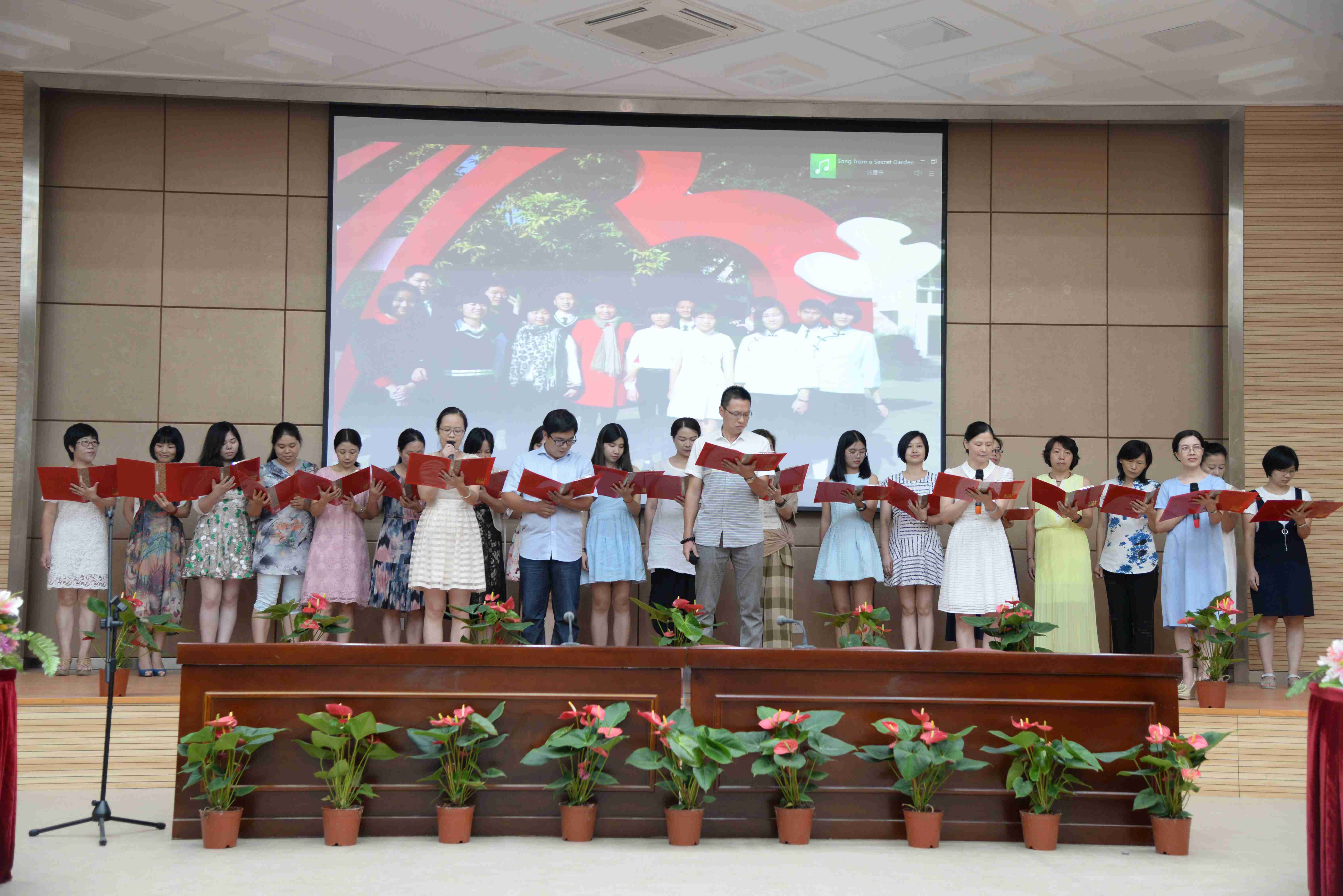 表彰会后,欢庆会接续,师生们用独特的方式庆祝节日。语文组献上了抒情的诗歌朗诵,学生会代表送上了精彩的曲艺节目,工会小家之间上演了激烈的夹乒乓球比赛,学校党委推送了老党员代表蔡炬辉老师的压轴曲目,这些活动不断将大会气氛推向高潮。欢庆会上,节日气氛浓厚,掌声如潮,处处洋溢着闽附的正能量,让闽附的师生充满幸福感、自豪感和成就感。希望全体师生继续团结一致,为早日实现美丽的闽附梦继续努力奋斗!