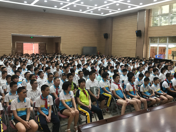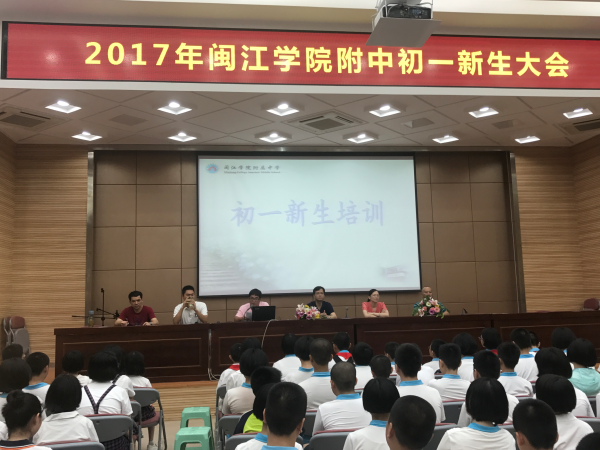 发表时间:2017-08-11 15:48 三校学子携手到闽附,誓做守规有礼闽附人 ――记2017级初一新生报到 8月的天气是炎热的,8月的校园也是热闹的。8月11日上午8点30分闽江学院附属中学又迎来了一群活泼可爱的同学,他们就是闽江学院附属中学的初一新生。他们带着憧憬、带着忐忑、带着希望来到这所绿树环绕的美丽校园。 孩子经过一个暑假,踏入初中进入了一个新的阶段,就要有一个新的要求规范,而在孩子的成长阶段,一些变化都需要从仪容仪表开始,所以学校从报到的第一天起就严格要求,告诉初一新生如何做一个合格的中学生。 上午9点,各班班主任组织同学有序地进入了正兴楼一楼多功能厅,闽江学院附中2017级初一新生大会正式开始,年段长陈超老师主持了本次大会,俞勇校长、谢海泓书记、连宇副校长、刘旭光副校长、教务处、德育处主任出席了新生大会。连宇副校长代表学校致辞,热烈欢迎新同学,以“中考出状元,高考进名校”为主题介绍了学校的办学成绩,接着连宇副校长对新生提出了三点要求:“学会当闽附的主人”、“学会当学习的主人”“学会做更优秀的自己”。最后他鼓励同学要在风雨中迎接历练,在正气中健康成长,做一名合格的初中生最后表达了学校对同学们的殷切期望,希望同学能够健康成长做合格中学生。德育处张杰副主任结合PPT以“做一个守规有礼的闽附人”为主题,首先对新生报到的情况作了简短的点评。从主人翁意识培养,从衣、食、住、行、等角度讲解如何做到守规有礼,从学生成长角度对初三三年校园生活提出了恳切建议。最后教务处副主任兼段长陈超老师从“讲究科学的学习方法,养成良好的学习习惯”为同学们三年的学习生活做了指导。每位老师的发言都得到了同学的热烈掌声。会场始终保持有序安静。 会后,同学们回到班上,继续在班主任组织下完成各项班级事务、互相熟悉,尽快适应新集体。 这次活动在全校师生高度重视与细致的配合组织下,秩序井然,环节紧凑,在帮助初一新生更好地了解学校,了解教师,了解初中的学习生活之余,也拉近了彼此之间的距离,相信闽江学院附中将是初一新生踏上学习新征程的新起点,所有同学通过自身努力,都将实现自己的人生目标和理想。