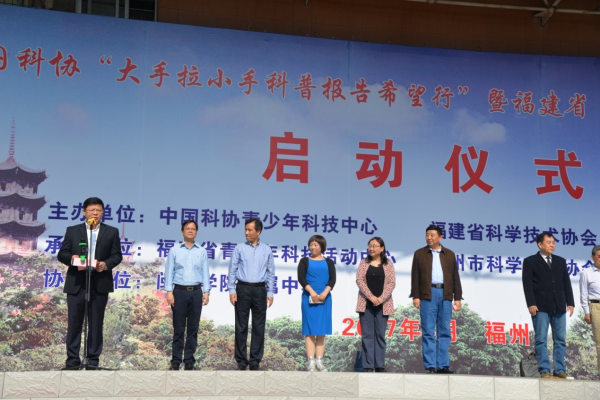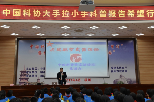 发表时间:2017-04-24 16:02 中国科协“大手拉小手科普报告希望行”暨福建省“百场科普报告进校园”活动在我校拉开帷幕 4月24日上午,由中国科协青少年科技中心、福建省科协、福建省教育厅共同主办的“大手拉小手科普报告希望行”暨福建省“百场科普报告进校园”启动仪式在闽江学院附属中学大操场隆重举行。福建省科协党组成员、副主席林学理、中国科协青少中心副研究员李冬晖、福建省教育厅基教处调研员黄荣光、福州市科协党组书记、副主席尤典真、中国科协科普巡讲团六名专家、福州市教育局副局长黄林、闽江学院附属中学校长俞勇及全校2500多名师生共同参加了启动仪式。启动仪式由福建省青少年科技活动中心主任侯小慰主持。 在启动仪式上,林学理副主席代表主办单位致欢迎辞,对中国科普巡讲团专家们的到来和闽江学院附属中学全校2500多名师生的参与表示热烈欢迎和衷心感谢。他特别指出,科协组织要积极主动加强科教联合,开展青少年科技教育活动,提高全省青少年的科学素质,推进青少年科普活动走进校园走进课堂,为提高我省青少年科学素质,培育建设新福建的科技创新后备人才做出新的更大贡献。 启动仪式后,在我校正兴楼多功能厅,中科协巡讲团执行副团长、中国国防委员会副主任、空军大校焦国力为我校师生呈献了一场精彩纷呈的科普盛宴。利用生动活泼、寓教于乐的互动问答形式,焦国力副团长让在场的青少年萌发对科学的向往,引导师生把科学知识、科学精神和科学方法运用到今后的学习和生活之中。焦国力副团长风趣而又精彩的介绍,赢得了我校师生的阵阵掌声。 中国科协“大手拉小手科普报告希望行”暨福建省“百场科普报告进校园”活动本着以贯彻落实《全民科学素质行动计划纲要实施方案(2016-2020年)》为宗旨,创新青少年科普教育模式,是中国科协依托中科协青少科技中心,邀请学术造诣高、演讲经验丰富的老科学家和资深专家组建高素质的专业化科普报告团,深入基层中小学开展公益性科普报告。此次活动增进了科学家与我校师生的交流,传播了科学知识,通过演讲报道引领我校师生走进了精彩的科学殿堂,提高了我校学生的科学素养,为她们今后的发展奠定了基础。 启动仪式现场