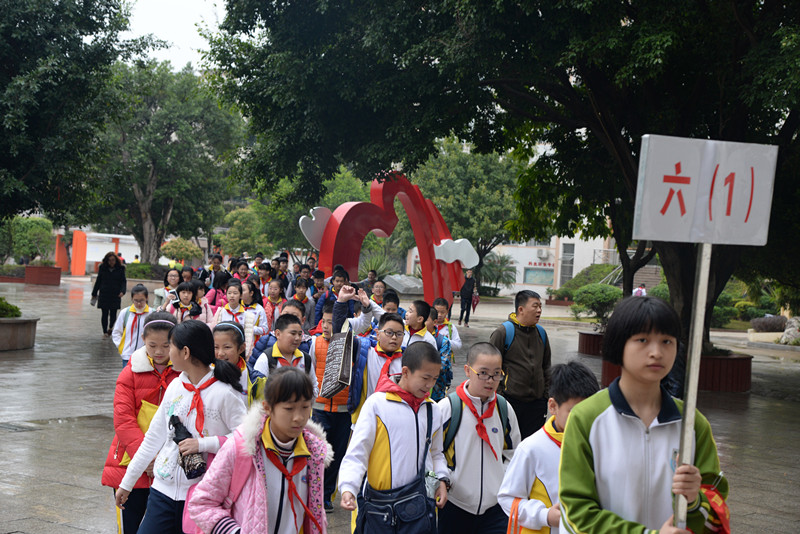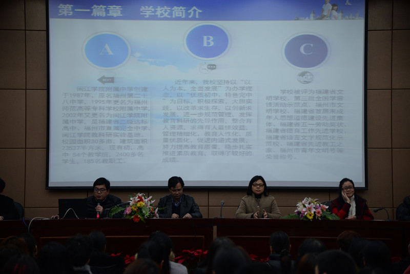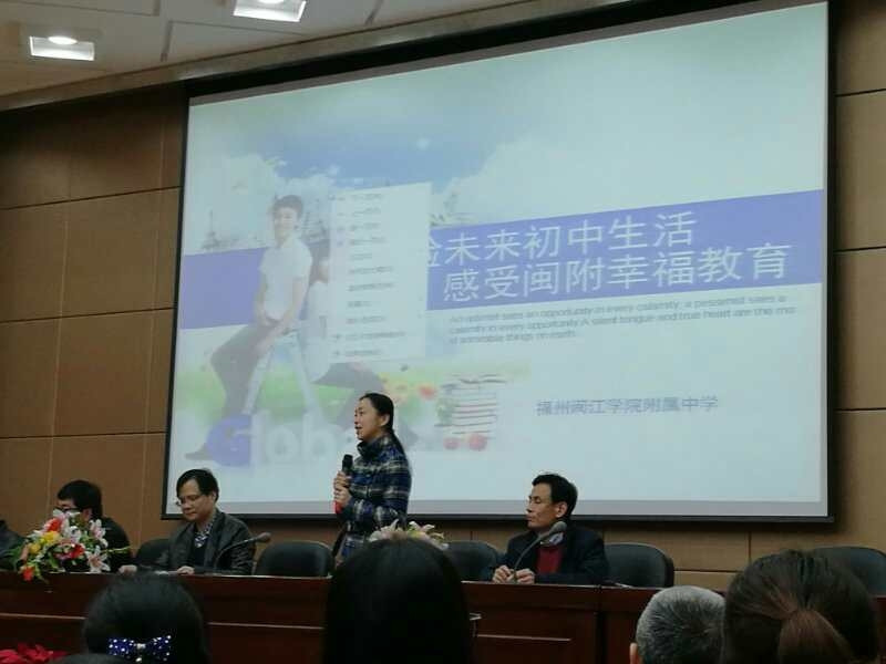 3月25日,星期六,春雨绵绵。闽江学院附中的这个周末却未因雨天而沉寂,反倒是更加热闹。福州市群众路小学、鼓楼第五中心小学和斗南小学三所学校的领导、老师及六年级的学生和家长来到了闽附,与我校部分师生共同参加以“体验未来初中生活感受闽附文化内涵”为主题的初小衔接活动。
