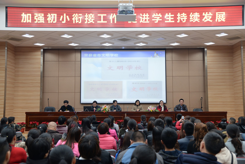 为让学生和家长更好地适应接下来的中学生活,我校组织了系列活动——开设初小衔接课程;带领学生家长参观闽附校园;组织学生参加互动主题班会;校领导介绍学校办学情况等。为让此次初小衔接工作完成得更加出色,雷锋班的学生协助实验室做好卫生;德育处、团队组织培训了40余名学生志愿者参与初小衔接工作。 在家长论坛上,我校领导十分感谢这三所学校对我校初小衔接工作的大力支持,为我校培养并输送了一批批优秀生源。接着,校领导围绕着衔接工作的开展意义、学生在闽附开展丰富多彩的课外活动及持续发展情况、近几年我校连年上升的中考情况以及我校优秀教师资源等方面向家长进行了介绍,让家长对闽附有全方位的了解。