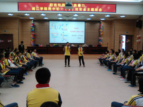 为进一步推进学生安全教育,提高学生安全意识和避险自救能力,2016年福州市教育局在全市中小学(含高职)、幼儿园开展优秀安全示范课征集评选活动,我校朱慧娟老师指导的安全主题班会《阳光校园拒绝暴力》荣获二等奖。
