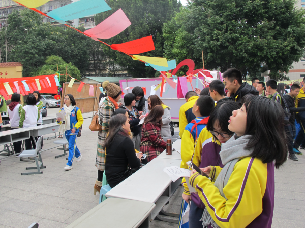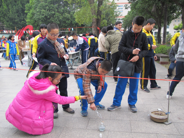 俞勇校长致开幕词 语文组于七里香下举办的新年心语挂树活动吸引师生为新年送上美好寄语;课本剧《雷雨》与新年诗会的精彩表演赢得师生的高度赞赏。 数学组别出心裁地举办了“唐老鸭漫游数学奇境”等5项活动,其中“趣玩‘数独’”活 动迷住了很多学生。 英语组准备了“心有灵犀”“Paperballs”等5项活动,“抢凳子”活动现场充满了欢声笑语。 生物组认真准备了“制作DNA模型”等3项活动,旨在通过动手来增强学生对生物的兴趣。 化学组用心举办了猜谜、结构模型制作比赛等6项活动,现场“铝热反应”的实验操作引得围观学生跃跃欲试。 地理组通过“地理拼图竞赛”“看电影、学地理”两项活动,激发学生用手、眼学习地理知识。 历史组重在回顾往昔,举办“历史文物展示及收集”等3项活动,让学生在对文物的观看中展开历史的联想,从而更好地过好当下。 政治组的“巧手折天”“时政猜谜”等5项活动,让政治学科变得有趣活泼。 美术组组织现场作画比赛,学生参赛的愉悦感远远超过了紧张感。体育组的排球、篮球、足球“三大球”活动气势磅礴,球场上的激烈对抗,球场边的热烈欢呼无不彰显着青春的活力。 物理组与信息组联合举办的“3D打印”“9D影院”等6项活动无疑成为这届科艺节的最大亮点。利用轻便的塑料材质打印出立体的栩栩如生的物品,这“3D”打印的神奇魅力吸引住在场的学生细细观赏并不断探究背后的原理。VR技术、9D影院的高科技进校园不但让学生早已排起长队准备亲身体验全真模拟实景的奇妙感觉,更让在场的校领导和老师也踊跃参与进来。 今年科艺节的活动内容更加丰富,组织工作更为严密细致。理论与实践结合,知识性与趣味性兼顾,既紧张又轻松愉快,营造了浓厚的科艺氛围,达到了寓教于乐的目的,赢得了全体师生的高度赞赏。我们将继续总结经验,不断努力,再创我校科艺教育工作的新辉煌。