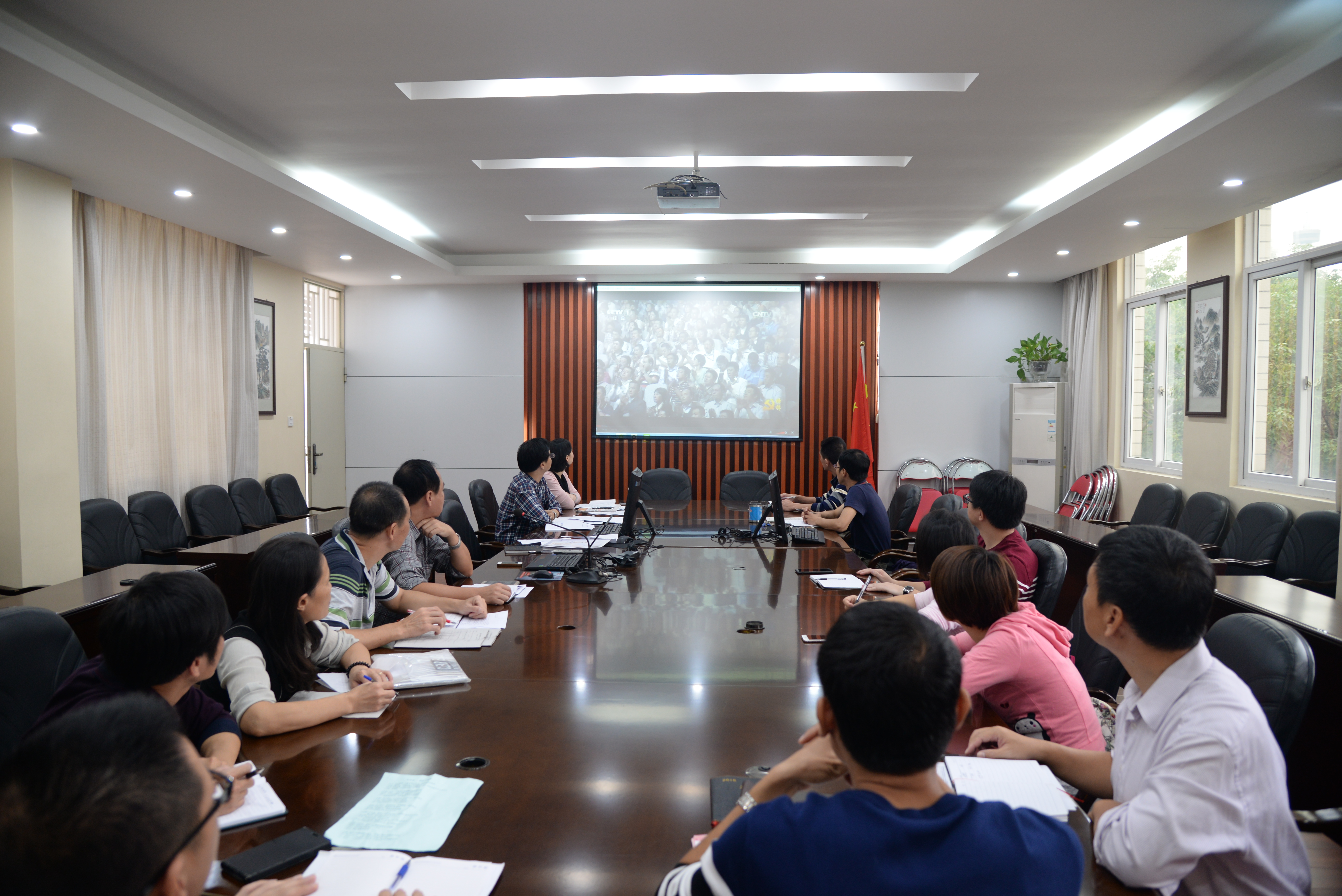 校行政会上,校领导与全体中层干部观看《榜样》专题教育片