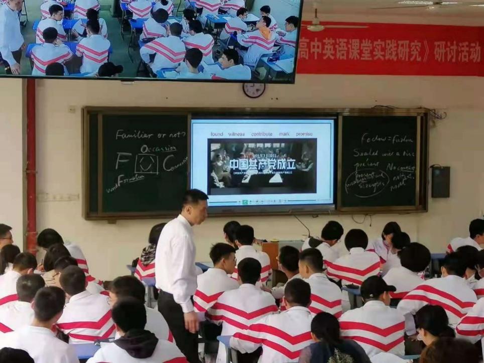 刘祯老师借班上课的《基于课文语篇的高考熟词生义复习》步步为营,丝丝入扣。他以语篇为定位,以词汇为线索,以思维为核心,用经典英文歌曲“入境”,以必修七改编教材“创境”,串一词多义 “绕口令”和高考真题“融境”,链接图说百年党史微视频视听读写产出“化境”,设计精妙不待言,出其不意意蕴长。 课堂以独到的主线,创设各层次的学习活动,使用视觉感官实现多感官整合,清晰指向复习巩固高考词汇的课堂目标,最终落地英语学科核心素养。