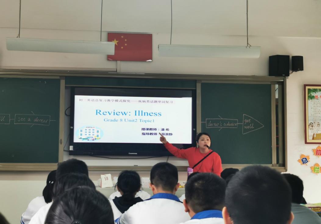 潘希老师借班开设了一节示范观摩课。本课是八年级上册U2T1单元的话题复习课。潘老师通过复习有关疾病的单词、词组、句型的表达法,导入复习如何询问疾病、复习如何回复疾病等句型,通过多种形式操练,并结合中考的题型,极大地调动学生的学习积极性与学习热情,锻炼了学生思维能力。