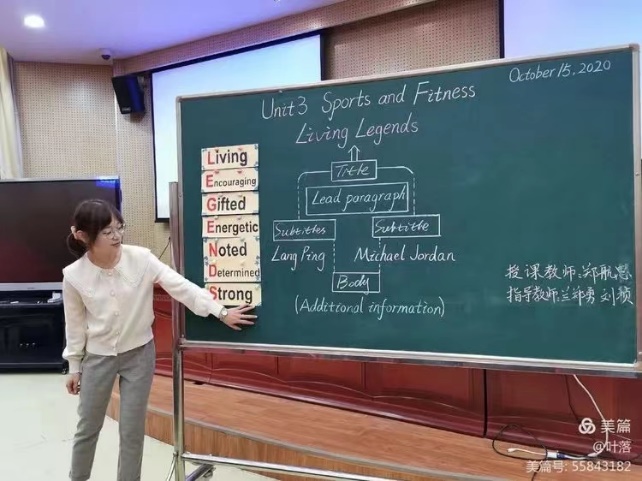 郑航思老师这节课的话题是运动和健康,阅读文本是某杂志社举行推选读者最喜爱的体育明星活动。本堂课主要引导学生抓住导语中的master和good examples这两个关键词和短语,解读文本,建构信息之间的关联,从英语学习活动观的视角重新审视课堂教学设计的合理性和有效性,培养学生理性思考和客观评判的思维品质。郑航思老师凭借扎实的英语教学基本功、多样纷呈的英语教学方式,给大家展示了一节新颖精彩的阅读课。