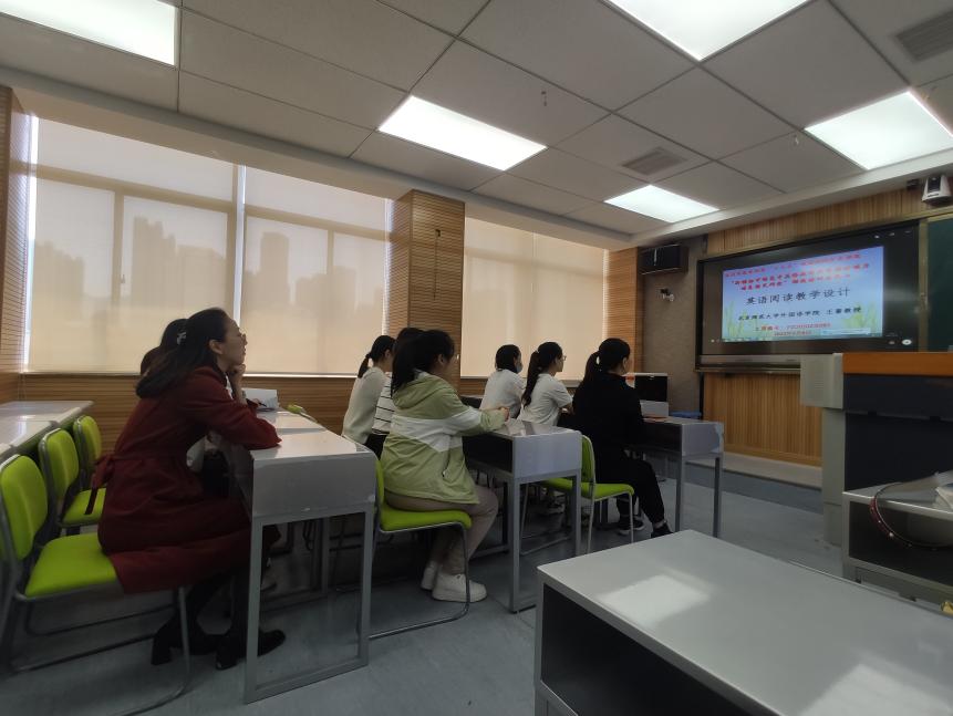 陈老师从文化意识展开,解读什么是文化意识,强调英语学科的核心素养,在教学设计中学生要学会用英语讲述好中国故事;通过感知、比较、分析和借鉴,加深对文化异同耳朵理解,提升对文化差异的满刚度和处理文化差异的灵活性,帮助学生坚定文化自信,增强国家意识。了解分析学情,让学生在具体语境中感受英语语言知识,学生学习词块精准地表述和表达,并运动思辨能力。 在兰郑勇老师的主持下,课题组全体成员于2022年5月8日参与了理论学习。兰郑勇老师组织课题组全体成员观看和学习王蔷教授《英语阅读教学设计》的讲座。