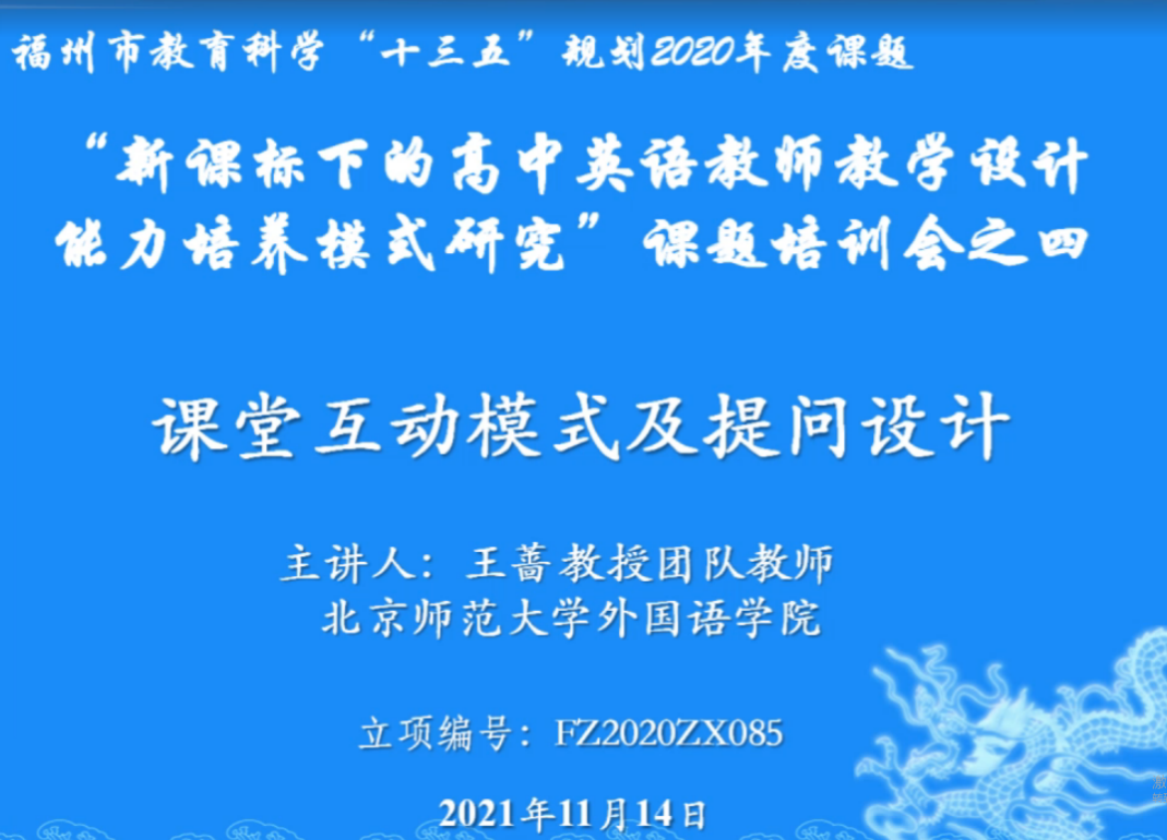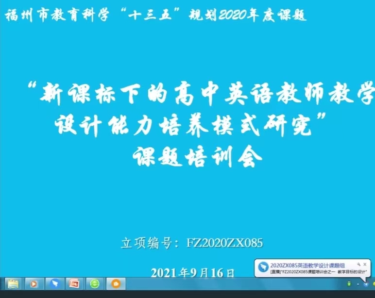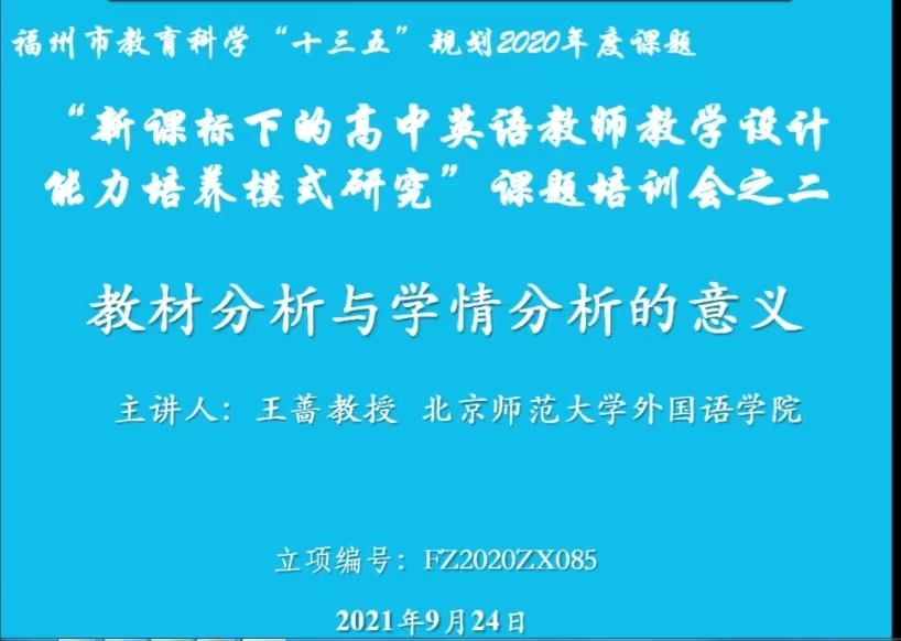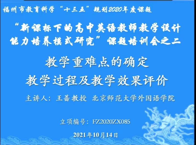 市教育规划课题《新课标下的高中英语教师教学设计能力培养模式研究》(FZ2020ZX085)课题培训会活动报道 二维码