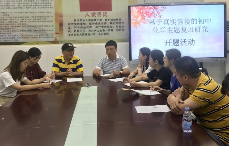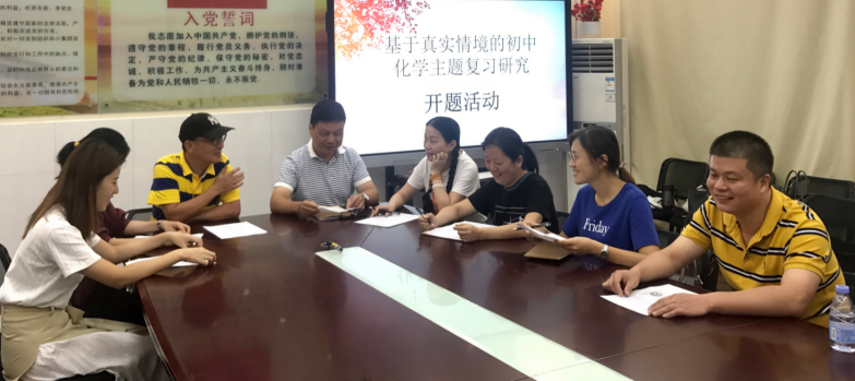 发表时间:2019-09-20 15:18 2019年9月20日,曾大庆老师主持的市教育规划课题《基于真实情境的初中化学主题复习研究》开题报告会在我校正兴楼二楼会议室召开。会议邀请了陈晨校长以及福州市初中化学教研员高级教师卢秉政老师、三十六中高级教师邓少华老师和城门中学校长正高级教师林萍老师三位专家莅临现场,课题组研究成员一并出席了会议。