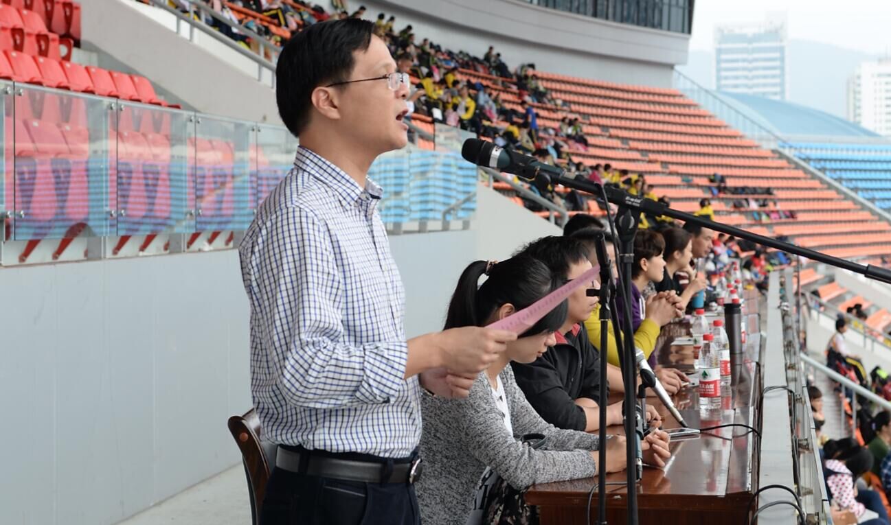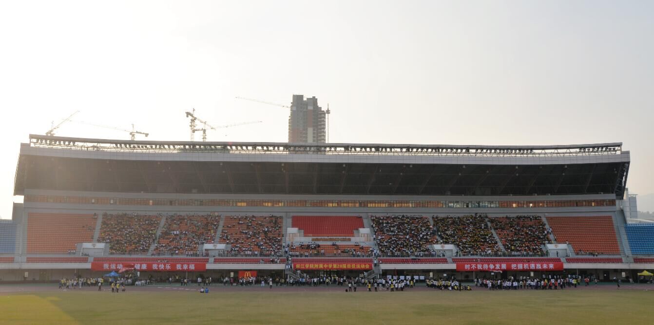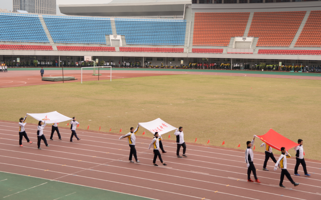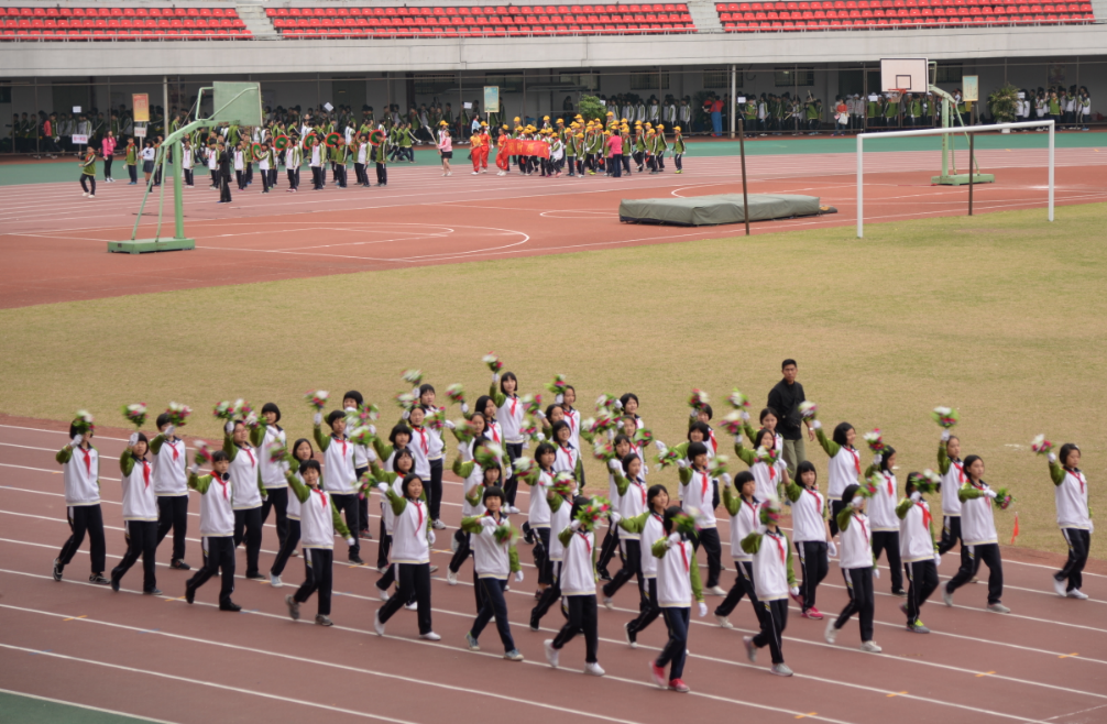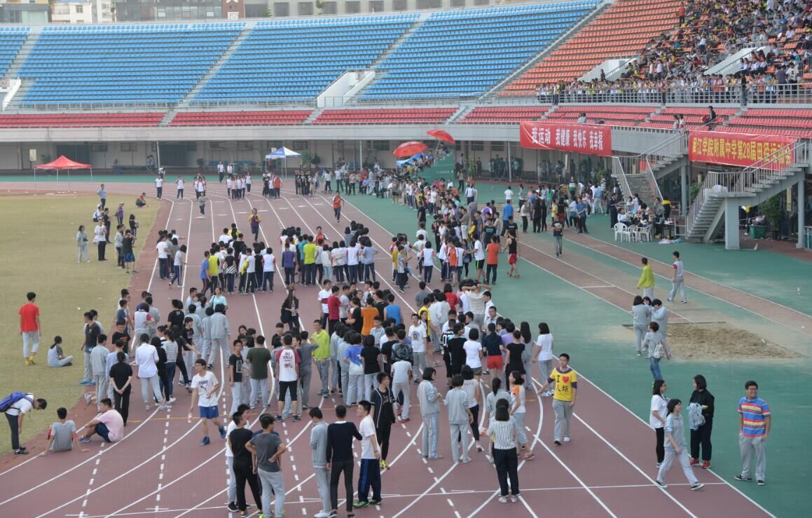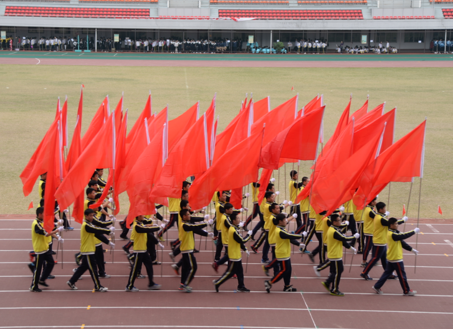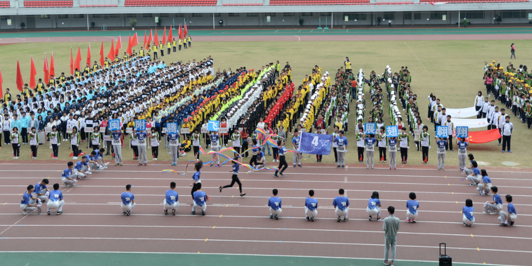 发表时间:2015-11-26 16:51 我校成功举办第28届田径运动会 青春的热情在金秋十月里飞扬,昂扬的梦想在运动场上绽放。11月16-17日,我校第28届田径运动会在福建省奥林匹克体育中心隆重举行。我校2600多名师生和家长代表参加了此次运动盛会。 16日上午7:50,伴随着铿锵有力、激昂奋进的运动员进行曲,我校第28届田径运动会正式拉开序幕。国旗队、会旗队、彩旗队、鲜花队、班级方阵、校督导队、健美操队、鼓号队依次入场。鲜艳的五星红旗在初秋的晨风中鲜艳夺目,校旗、会旗交相辉映,庄严、神圣。鲜花队、彩旗队、各班级方阵、校督导队、健美操队、鼓号队彰显了我校学子的青春风采。 各班级方阵踏着铿锵有力的节奏入场,舞蹈表演、队列造型、特色展示……无论何种形式,同学们都在举手投足间倾注了对校运会的满腔热情和对集体、学校的真挚情感。 高一年段各班级方阵是开幕式上一道独特的风景,各方阵手持太阳花和一个英文字母,八班级八个字母组成英文单词“POWERFUL”,寓意着高一的学子拥有坚持不懈、坚韧不拔的品质,凝聚着闽附的无限正能量,成为全场的焦点。 入场式结束后,举行了庄严的升国旗仪式。随后我校校长俞勇致开幕词并宣布闽江学院附中第28届田径运动会开幕!俞校长在致辞中指出我校始终坚持全面贯彻教育方针,大力推进素质教育,特别注重提高学生的身体素质。学校一年一度的校运会,正是大力推进素质教育的重要体现。在赛场上,希望每位运动员精神饱满,斗志昂扬,安全、文明、规范参赛,讲文明、讲秩序、讲团结、讲奉献,保证校运会的顺利进行,并预祝第28届校运会取得圆满成功。 在为期两天的运动会中,我校举办了初、高中集体组4×100米接力,高中男子、女子组1500米,初中男子、女子组800米,初、高中男子、女子组100米、200米、400米,初、高中男子组铅球、跳远、跳高,集体跳大绳、16×50米迎面接力等一系列的比赛。教工运动会也如火如荼的展开,学生为自己的老师呐喊助威。本次运动会不仅展现了我校学生的活力,而且充分展现我们教师员工团结进取、健康快乐、朝气蓬勃、和谐共进的精神风貌。 17日下午5:00,举行运动会闭幕式。闭幕式上,组委会对体育道德风尚奖、入场式、广播操、团体总分、最佳组织年段等进行了表彰。我校党委书记谢海泓致闭幕词。她指出本届运动会开得隆重、热烈、圆满、成功,全面展现了广大师生奋发向上的精神风貌。希望全体师生把赛场上精诚团结、永不服输、一往无前、超越自我的体育精神,带到今后的工作和学习中去, 为更加美好的明天而努力拼搏!