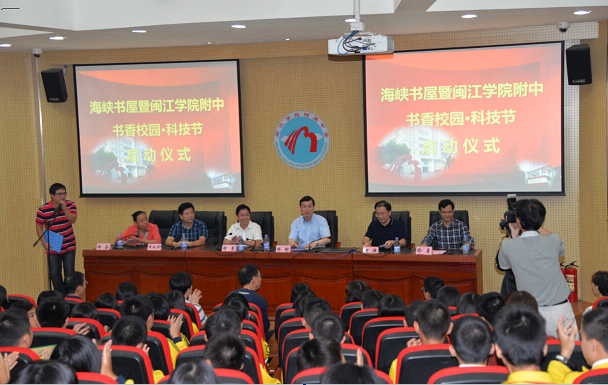 2015年10月13日下午,我校举行海峡书屋暨书香校园?科技节启动仪式。海峡出版社发行集团总经理林彬同志、市教育局局长郑勇同志、福建科学技术出版社社长何捷同志、市科协党组成员福州夜大校长黄兆津同志及共建设区、兄弟学校等领导来宾应邀参加了本次活动。 在启动仪式上,我校俞勇校长代表学校热烈欢迎各位领导来宾,感谢海峡出版发行集团对学校书香校园建设的大力支持,感谢福建科学技术出版社与学校共建海峡书屋,为学校提供各种图书,尤其是关于科技方面的书籍,给同学们搭建一个平台,给同学们营造一个更活泼、健康、宽松且有价值的成长空间。林彬同志作了讲话,指出,闽江学院附属中学作为福州教育科普特色校作了多年探索,尤其是当下拟通过与福建科学技术出版社共建“书香校园”,旨在通过建立一个科技教育融合的平台,希望学校增强科教融合的理念,增进科学知识的普及,增添科技创新的概念,增援科学知识的理解,增广科研成果的先导,增益科班学业的建设,有效促进科教融合与科普教育得到创新性的发展。启动仪式上,福建科学技术出版社何捷社长与我校俞勇校长签订共建海峡书屋协议。 随后在阅览室举行“海峡书屋”揭幕暨启动仪式。林彬总经理、郑勇局长、何捷社长等人为“海峡书屋”揭幕,捐赠图书。 作为科技节的一项内容,学校邀请福建师大附中林泳许老师作科技创新科普讲座,精彩的讲座赢得了同学们的阵阵掌声,激发了同学们参与科普活动的热情。 |