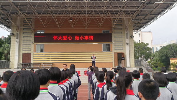 发表时间:2018-12-03 09:19 怀大爱心,做小事情 老师、同学们,上午好! 我是来自高二(3)班的叶铭东。“国的家住在心里,家的国以和矗立”。我们的国家因为和平,因为和谐,所以能够屹立在世界民族之林,我们作为一位炎黄子孙,有责任去维护我们国家的和谐,而作为一名中学生,更应该做个志愿服务社会,遵守国家《宪法》的好公民。12.4与12.5分别是宪法宣传日和国际志愿者日,今天我不仅作为一名学生,更作为一名志愿者,来给大家讲讲一些志愿服务的事。 那么,志愿服务是什么?志愿服务是几乎是每个文明社会不可缺少的一部分,它是指任何人自愿贡献个人时间和精力,在不为物质报酬的前提下,为推动人类发展、社会进步和社会福利事业而提供服务的活动。志愿者通过参与志愿服务,提高自身的办事能力,同时也促进了社会的进步。 为什么要做志愿者?对社会而言,志愿活动可以传递爱心,传播文明。志愿者在把关怀带给社会的同时,也传递了爱心,传播了文明。还有助于建立和谐社会,加强了人与人之间的交往及关怀,减低彼此间的疏远感。亦可促进社会进步。社会的进步需要全社会的共同参与和努力,爱人者,人恒爱之”,当人服务社会之时,反过来也是在为自己服务,造福自己。 我校志愿活动记录十分丰富,以“学习雷锋、奉献他人、提升自己”为主题,以开展持续性、多样性的志愿者服务为主线,努力打造群体性、规范性的志愿服务团队,形成了七彩虹社团志愿者服务队、教师志愿者服务队、家长志愿者服务队、少年雷锋班、网上雷锋班等“五支队伍挑大梁,全校师生学雷锋”的良好态势,整合形成闽江学院附中志愿者协会。2016年被省委宣传部命名为福建省学雷锋活动示范点,2017年被中宣部命名为第三批全国学雷锋活动示范点。近年来,校团委还曾获评省五四红旗团委、市青年五四奖章集体、福州市红旗团委、福州市优秀志愿服务集体等荣誉称号。 “怀大爱心,做小事情”,同学,让我们把责任“担”起来,把精神“扬”起来,传承并弘扬雷锋精神,用爱心传承文明,用真情奉献社会,为创建大美闽附贡献力量!