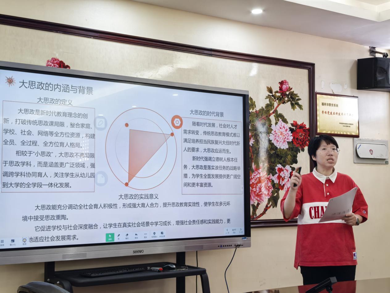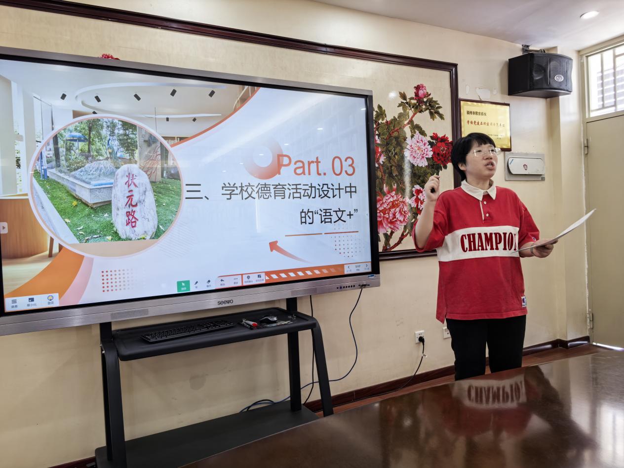 发表时间:2025-05-15 08:43 在新时代教育改革与发展的浪潮中,落实立德树人根本任务、推进思政教育融入各类课程成为教育工作的重中之重。为深入探索语文教学与思政教育的有机融合,闽江学院附属中学语文教研组于5月14日开展了一场别开生面的课程思政讲座活动。德育处副主任、团委副书记吴晓芳将德育课程体系建设与语文课程思政相融合,为语文教师们做主题分享。 此次讲座基于教育部福建师范大学基础教育课程研究中心 2023 年度开放课题《语文教学融合革命文化的策略与实践研究》(课题批准号:KCA2023263)以及福州市教育科学研究“十四五”规划2023年度课题《课程的思政价值发掘和实现路径研究》(FZ2023ZX003)两项课题的研究成果,进行汇报交流,为学校的思政教育工作注入新的活力。