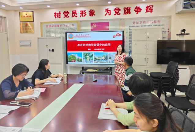 此外,她还分享了AI辅助制作分子结构3D模型、一键生成化学实验流程图等实用技巧,引发在场教师热烈讨论。 智慧教育新篇章:跨界融合共谋发展 本次活动为化学教师搭建了一个交流与学习的平台,让教师们深刻认识到 AI 技术在化学教学中的巨大潜力和应用价值。活动最后,陈龙朱副校长总结指出:“AI不是替代教师,而是帮助教师从重复劳动中解放,更聚焦于创造性教学设计和学生核心素养培养。