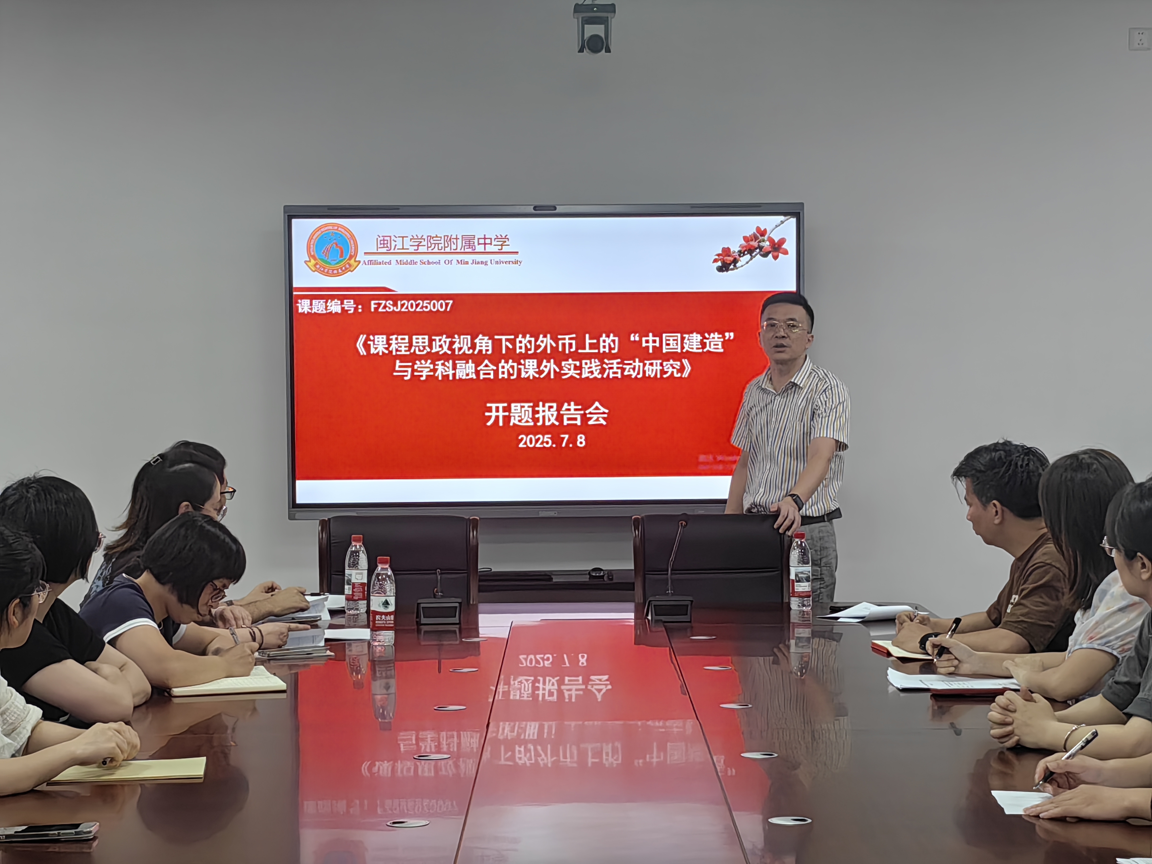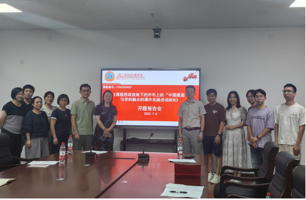 发表时间:2025-07-12 22:48 2025年7月8日,闽江学院附属中学申报的2025年福州市综合实践(研学实践)及劳动教育研究课题《课程思政视角下的外币上的“中国建造”与学科融合的课外实践活动》开题报告会成功举办。本次活动特邀福州教育学院附中教务处主任林昱和福州金山中学陈慧老师两位专家莅临指导,课题组全体成员及部分教师代表参会。