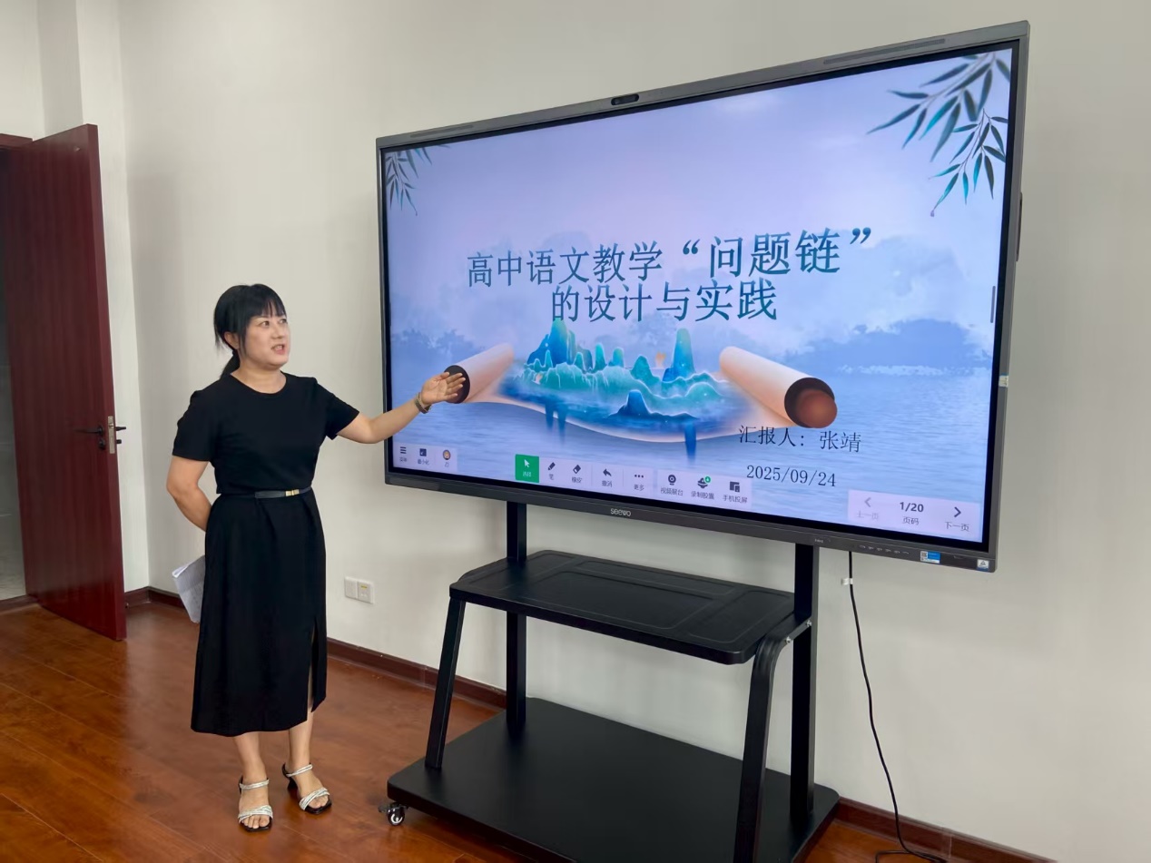 发表时间:2025-09-24 18:13 为破解高中语文课堂 “满堂灌”“碎问连答” 的教学困境,落实新课标下核心素养培育要求,9 月 24 日上午,闽江学院附属中学语文教研组召开专题教研会,张靖老师以《高中语文教学 “问题链” 的设计与实践》为题开讲,为全体语文教师系统解读 “问题链” 教学的核心要义与实践路径,引发热烈研讨。