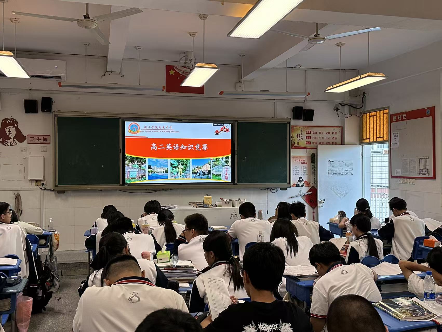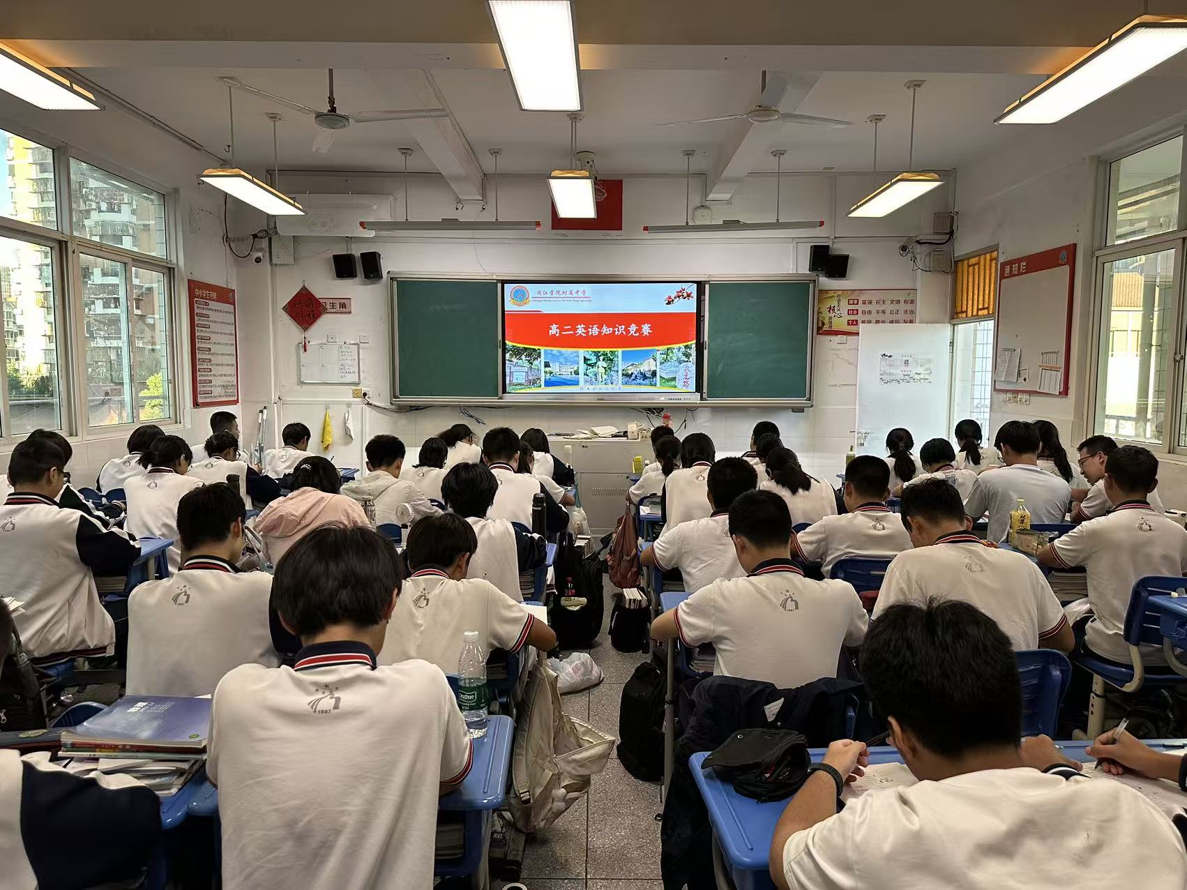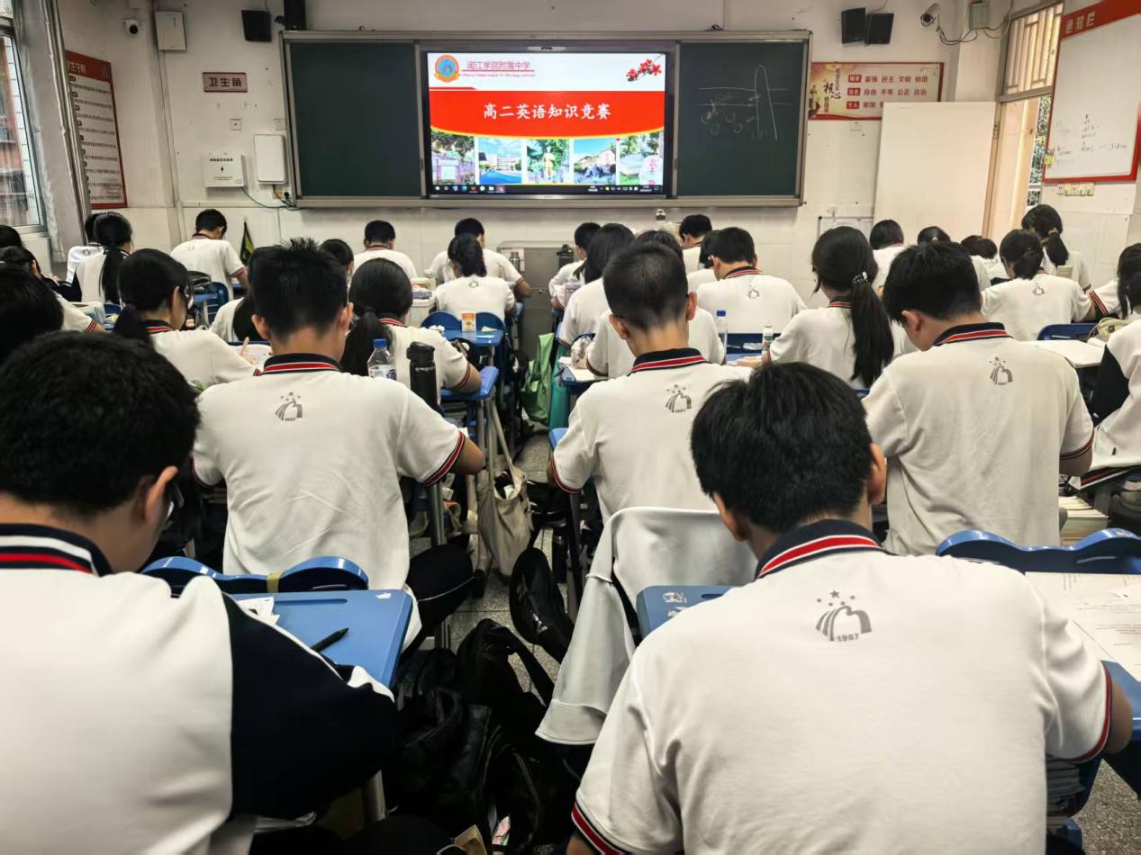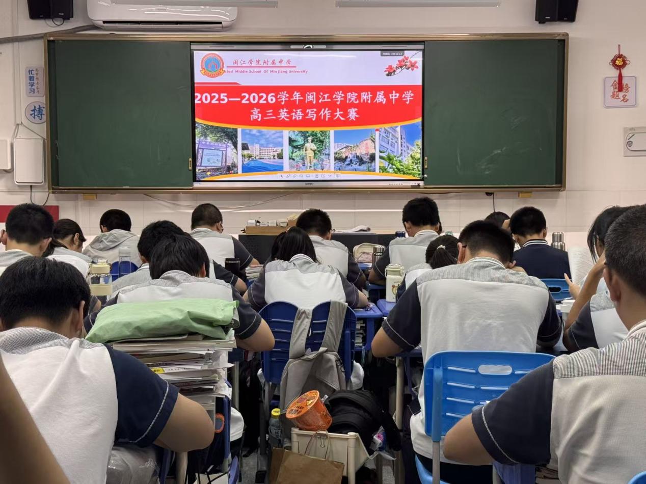 发表时间:2025-10-11 14:57 以赛促学展风采,闽附高中英语竞赛燃动青春 笔尖流转间尽展语言魅力,思维碰撞中点亮学习热情。近日,闽江学院附属中学高中部英语组精心策划的年级专属知识竞赛圆满落幕。高一 “英语必备知识竞赛” 夯实基础,高二 “英语单词竞赛” 比拼积累,高三 “英语写作竞赛” 彰显素养,三个年级各有侧重、各具亮点,为校园注入了浓厚的英语学习氛围。 高一年级的 “英语必备知识竞赛” 聚焦基础能力提升,竞赛内容涵盖语法规则、基础句型、常用短语等核心知识点。考场上,同学们挺直脊背、专注审题,时而皱眉思索语法细节,时而流畅书写答案,笔下的每一个字符都凝聚着对知识的认真态度。英语组教师表示,通过基础竞赛帮助学生巩固所学,及时发现知识漏洞,为后续英语学习筑牢根基,是此次竞赛设计的核心初衷,从同学们的答题状态来看,竞赛确实达到了预期效果。