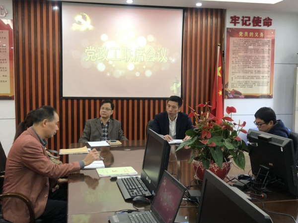 发表时间:2018-11-28 10:29作者:上官翰明 我校召开党政工联席会议 2018年11月28日上午,我校党政工在正兴楼六楼会议室召开党政工联席会议,俞勇校长、刘祯书记、连宇副校长、办公室杜强主任、工会上官翰明参加会议。