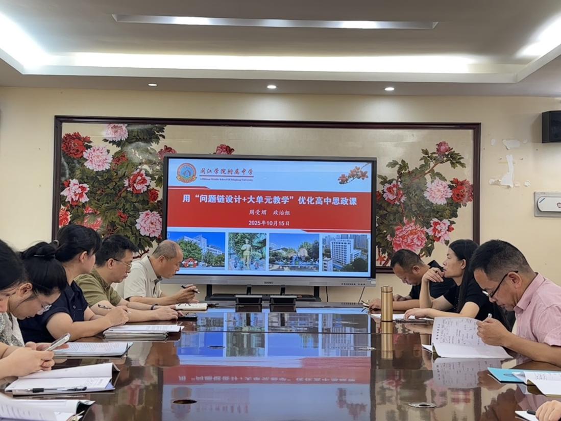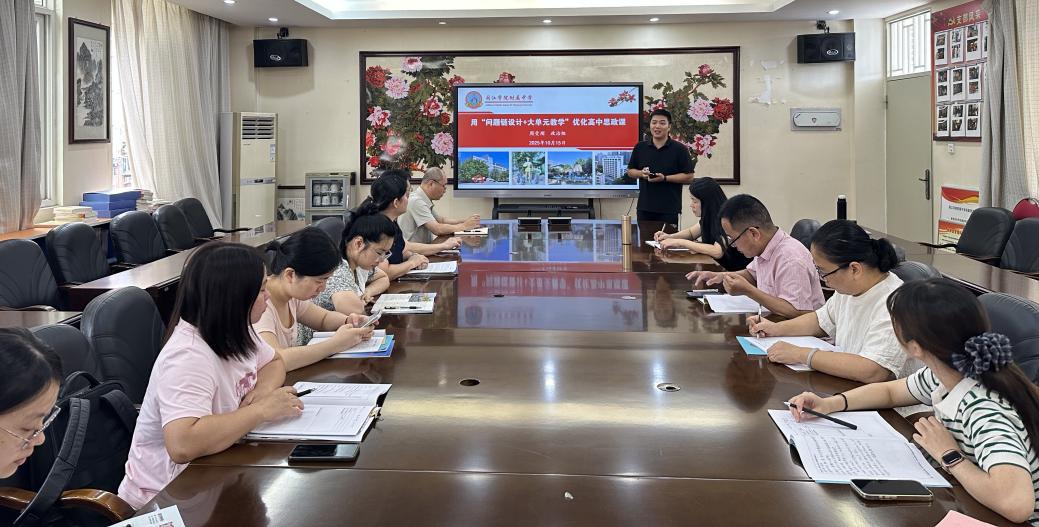 发表时间:2025-10-15 17:00 在教育改革持续深化、思政教育纵深推进的背景下,如何创新教学模式、提升育人实效成为关键命题。10月15日,政治教研组以“问题链设计+大单元教学”为主题召开教研组会,校党委书记邢世涛、校长刘剑、副校长陈龙朱、教务处主任赵晖、教科室主任曹育红全程参与指导,为思政教育高质量发展锚定新航向。