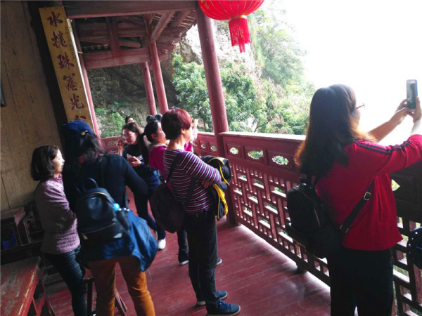 第一站我们来到永泰方广岩,大家三五成群,沿阶梯而上,一路欢笑,累了互相搀扶互相鼓励,或在长短亭处休息片刻,继续前行。看到美景,驻足欣赏不忘拍照留念。到达山顶方广岩寺,千年古寺独特的一片瓦,让老师们领略了古人的智慧,惊叹于自然的鬼斧神工。