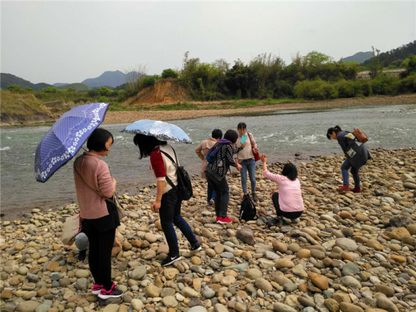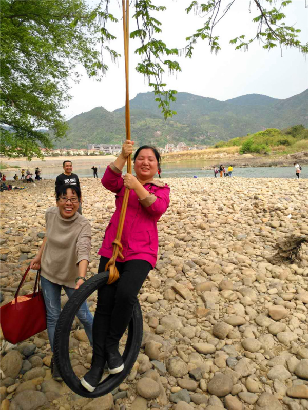 吃过午饭,稍作休息,我们来到第二站葛岭桃花洲,这是位于大樟溪畔的一个小岛,自然成形的大树在雨后显得特别翠绿,大家漫步小道,呼吸着新鲜空气,面对满树梨花开,老师们又摆开各种姿势纷纷留影;下到河滩,望着哗哗的流水,望着远处的青山绿水,有的玩起了打水漂,有的玩起荡秋千,有的寻找起奇异的鹅卵石,有的组团合影,笑语在河滩荡漾。