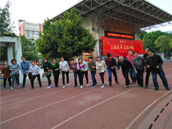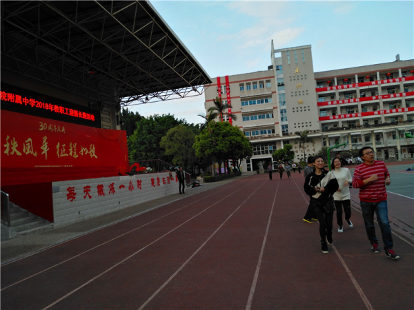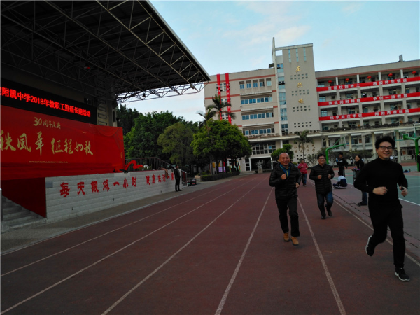 发表时间:2017-12-29 11:15作者:上官翰明 我校举行教职工迎新长跑活动 为丰富我校教职工文化体育生活,促进教职工加强体育锻炼,增强教职工的体质,倡导“每天锻炼一小时、幸福生活一辈子”的幸福教育,我校于2017年12月29日下午在学校田径运动场举办教职工迎新长跑活动。 活动开始前,参加活动的老师早早到达现场,一边做热身活动一边交流新年的安排和愿望,一幅热闹的景象;活动开始,参加活动的教职工迈出有力的步伐,欢快地跑向前方,拥抱新年拥抱新希望,共同祝愿学校新年教育教学蒸蒸日上。