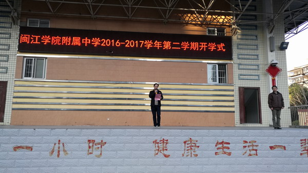 发表时间:2017-02-13 11:25 国旗下讲话 开学仪式国旗下讲话 2017年2月13日 俞勇校长 尊敬的老师、亲爱的同学们: 金猴辞旧岁,彩凤迎新春。新年伊始,万象更新,校园生机勃勃,洋溢着春天的气息。值此开学之际,我代表学校党政工祝全体师生在新的一年里身体健康、工作顺利、学习进步、学业有成! 新的一年,新的学期,孕育着新的希望和憧憬。全体师生经过寒假短暂的休整之后,又满怀信心和斗志,站在新的起跑线上,共同携手描绘闽附发展的新蓝图。作为学校的主人,大家要继续以主人翁的态度积极参与到学校、班级的各项工作中去,为班级工作、学校工作出谋划策,为学校的发展腾飞献出自己的一份力量。新学期伊始之际,我向大家提出以下几点希望和要求: 一、增强道德修养,塑造成功人格 塑造成功人格,就必须加强道德修养。对老师而言,以倡导爱岗敬业、无私奉献、教书育人、质量为本等为主要内容。以加强师德师风建设为活动载体,提升教职员工综合素质和幸福指数,引导教职工自觉提升师德师风水平。对同学们而言,以“三心”教育,即“在家中为长辈尽孝心、在学校为同学送关心、在社会为他人献爱心”及奉献社会、提升自己等为主要内容,突出“感恩”教育、“爱心”教育、 “诚信” 教育、 “责任” 教育。希望同学们与家校一起,共同参与道德建设,努力做到:学会做人,学会做事,学会生活,学会学习,学会合作;勤学苦练,自强不息,努力拼搏,与时俱进,逐步实现自己的人生价值和未来理想。 二、狠抓养成教育,敢于担当责任 对同学们来说,勤奋学习、刻苦锻炼就是对己负责;遵守校纪校规,遵守社会公德就是对学校、对社会负责;孝敬父母、尊敬长辈,就是对家庭负责;爱护公物、讲究卫生、关心集体就是对班级的负责。如果没有了责任感,就不会有团结向上的班集体、整洁优美的学习环境,就不会有稳定的社会秩序,所以希望同学们要以对国家、对社会、对家庭、对人生的责任感,按照中学生日常行为规范来严格要求自己,尽到自己的责任,努力修炼自己的思想和学业,实现自己人生价值。 三、提高教学质量,提升办学品味 狠抓教育教学质量,是学校工作的永恒主题。新学期,新目标、新希望、新挑战在迎接着我们。我真诚地希望2017届毕业班的同学们能够明确目标,珍惜时间,主动学习,均衡发展,努力冲刺,争创中高考佳绩。同时,更希望其他年段的同学树立远大的目标,打好基础,好好把握学习的黄金时期,为以后的发展奠定坚实基础。明天,能以优异的成绩向母校交上一份满意的答卷。 老师、同学们,我们发展前进的道路还很长,未来的美好蓝图等待我们用勤劳和智慧去描绘,我衷心希望每一位老师、每一位同学都能以满腔的热情、高度的责任感、昂扬的斗志投入到新学期的工作、学习中去,用我们闽附人特有的实干、拼搏、进取精神去创造闽附的辉煌前程!谢谢!