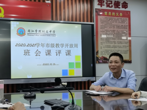 秋天是春与夏的归属,是四季中最灿烂的季节,闽江学院附属中学也迎来了硕果连枝的市级公开周。 2020年10月13日,公开周首日下午,初二年段刘畅、吴晓芳两位老师围绕“在主题延伸活动中培养学生爱国品质的研究”开设了两节精彩纷呈的公开课。福州市德育研究工作室严权纲、兄弟学校德育同仁与我们年段长、班主任们进行了观摩研讨。