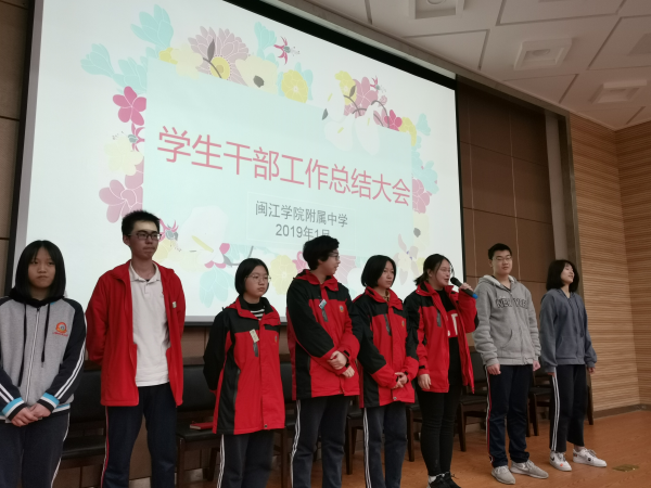优秀学生干部们大合影 最后,陈美婷老师现场公布了2019年新学期部长、社长名单,各位新干部们自我介绍,完成新旧学生干部交接,愿我校新一年的学生工作更上一层楼??! 学生会新部长们集体亮相