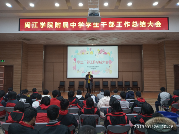 团委陈美婷老师讲话 此次工作总结大会不仅是对本学期各项工作的总结与反思,也是对新学年工作的展望与部署;同时使各部门明确了今后的工作方向,为新学期工作的顺利开展打下了扎实基础 。通过此次会议,同学们对自己的不足之处有了清醒的认识。学生干部全体成员也会以此次工作总结大会为新的起点,找准自身定位,将精力投入到学生工作中去,更好地为我校校园文化和干部队伍建设做贡献。 在总结会进程中,还分别为本学期优秀学生干部进行颁奖和表彰。