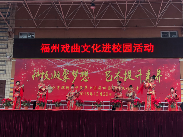 发表时间:2018-12-29 13:18 传承传统文化 做小小传承人 ——闽江学院附属中学戏曲进校园活动 为深入学习贯彻习近平新时代中国特色社会主义思想和党的十九大精神,及福州市教育局转发的《省教育厅办公室关于开展2018年“少年传承中华传统美德”系列教育活动的通知》精神,我校借助科艺节这一契机,开展了“迎新年、树新风、育新人、创新业”之戏曲文化进校园的主题活动。 本次活动邀请福州评话传承人,科题流派第四代传人——方民忠老先生为师生们开设讲座。活动旨在让学生在了解历史文化知识的基础上,充分了解福州非物质文化遗产资源——福州评话,学习福州的优秀传统文化,将中华优秀传统文化和中华传统美德内化于心、外化于行。 老先生风趣幽默的讲解,绘声绘色的表演,言传身教的现场授课,赢得了师生的阵阵掌声,勾起了同学们的浓厚兴趣。 操场上,悠扬的音乐声响起,福州市评话伬艺传习所的专业演员们,为师生们带来了十番伬——《秦楼月》?《春回坊巷》的精彩表演。这一极具地方风情的剧种,为大家上演了一场耳目一新的视听盛宴。 我校努力实践着弘扬优秀传统文化历史责任,并把这项活动纳入学校德育和校园文化艺术活动安排,结合行为习惯养成教育,把这一活动落细落实。接下来,我们也将持续开展“少年传承中华传统美德”系列教育活动,为师生们带来更多不一样的体验。