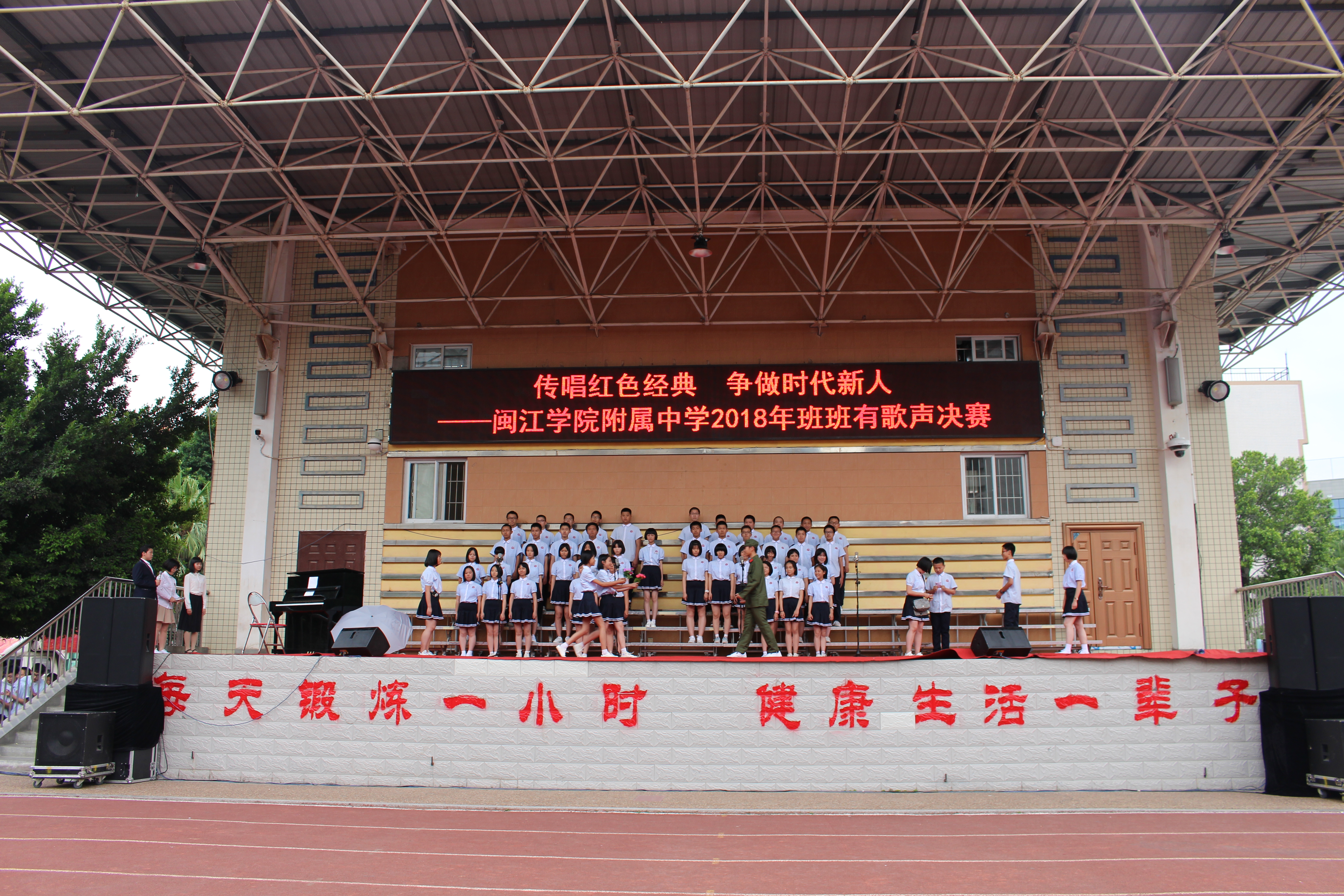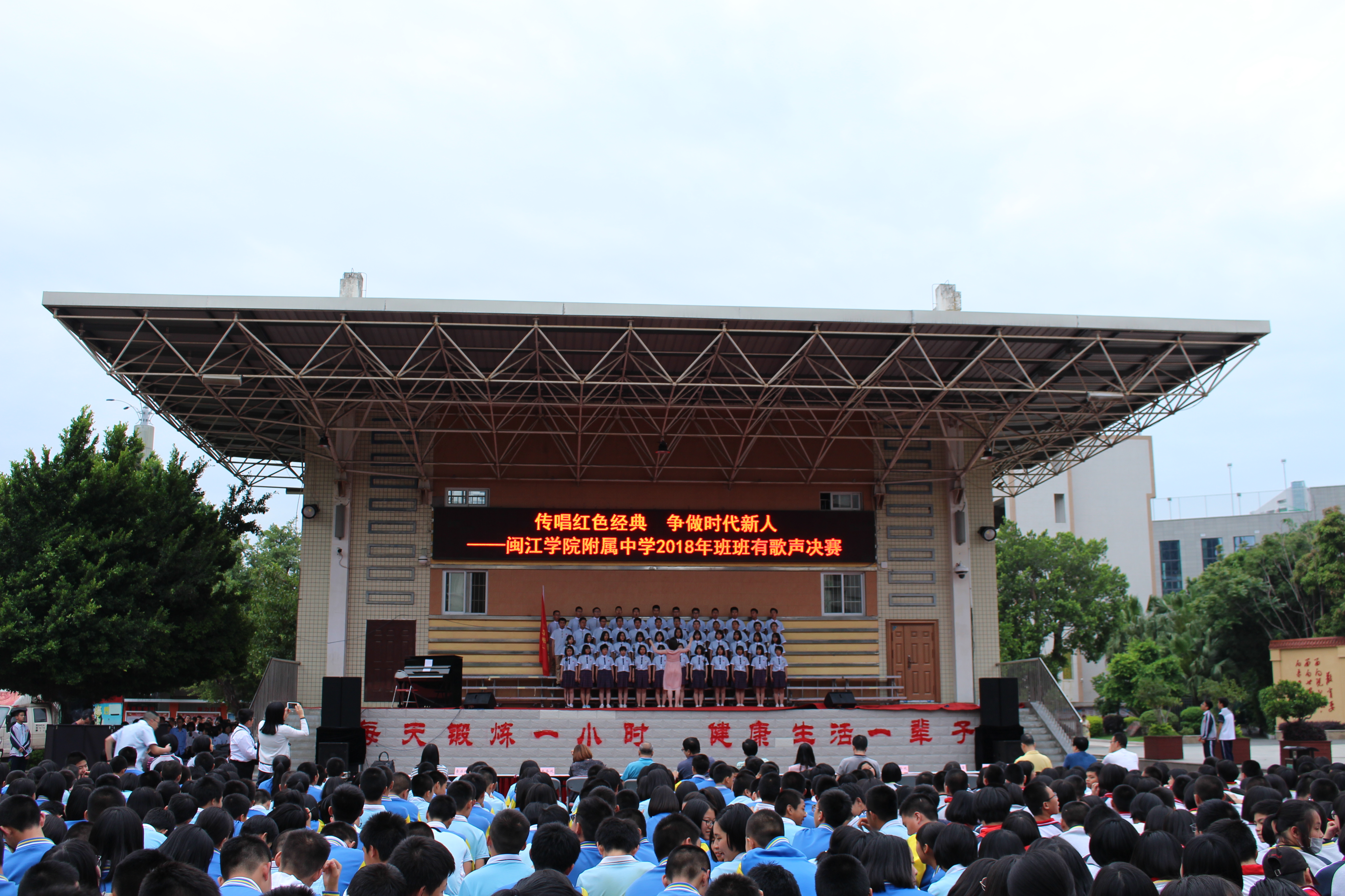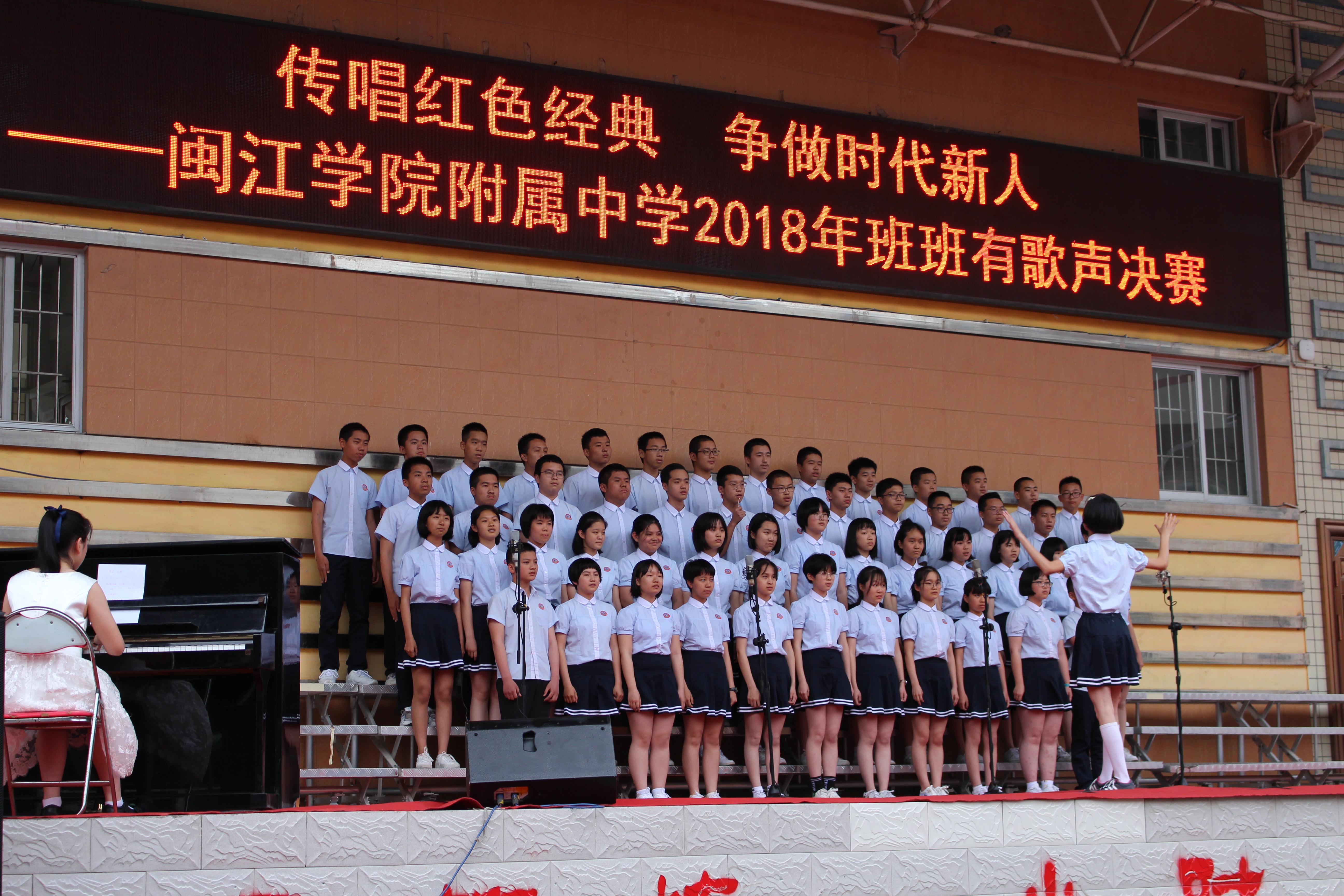 2018年5月10日下午,在我校的田径场举行了“传唱红色经典 争做时代新人”班班有歌声比赛的决赛活动。俞勇校长、谢海泓书记、刘旭光副校长、陈祁罕副校长、连宇副校长应邀观看了比赛。 经过紧张激烈的初赛,最后入围决赛的14个班级,为在场观众跟评委奉献出一场精彩的合唱比赛! 初一年段进入决赛的班级,合唱了一曲《学习雷锋好榜样》拉开了决赛的帷幕。本届班班有歌声比赛,各班级在选择曲目时突出红色经典,突出我校作为全国学雷锋示范点的特色。各班同学们以饱满的精神,动听的歌声唱出了对祖国、对雷锋、对校园的热爱。同学们以多彩的服装、多样的形式表现出对生活的热情,对雷锋精神的传承。各具特色的演出赢得评委、观众阵阵的掌声和欢呼声。 整场比赛,台上台下秩序井然,表现出我校学生一贯的良好风貌。这次的“班班有歌声”活动给师生们的校园生活增加了绚丽的色彩!同时也展示了我校学生良好的艺术素养。