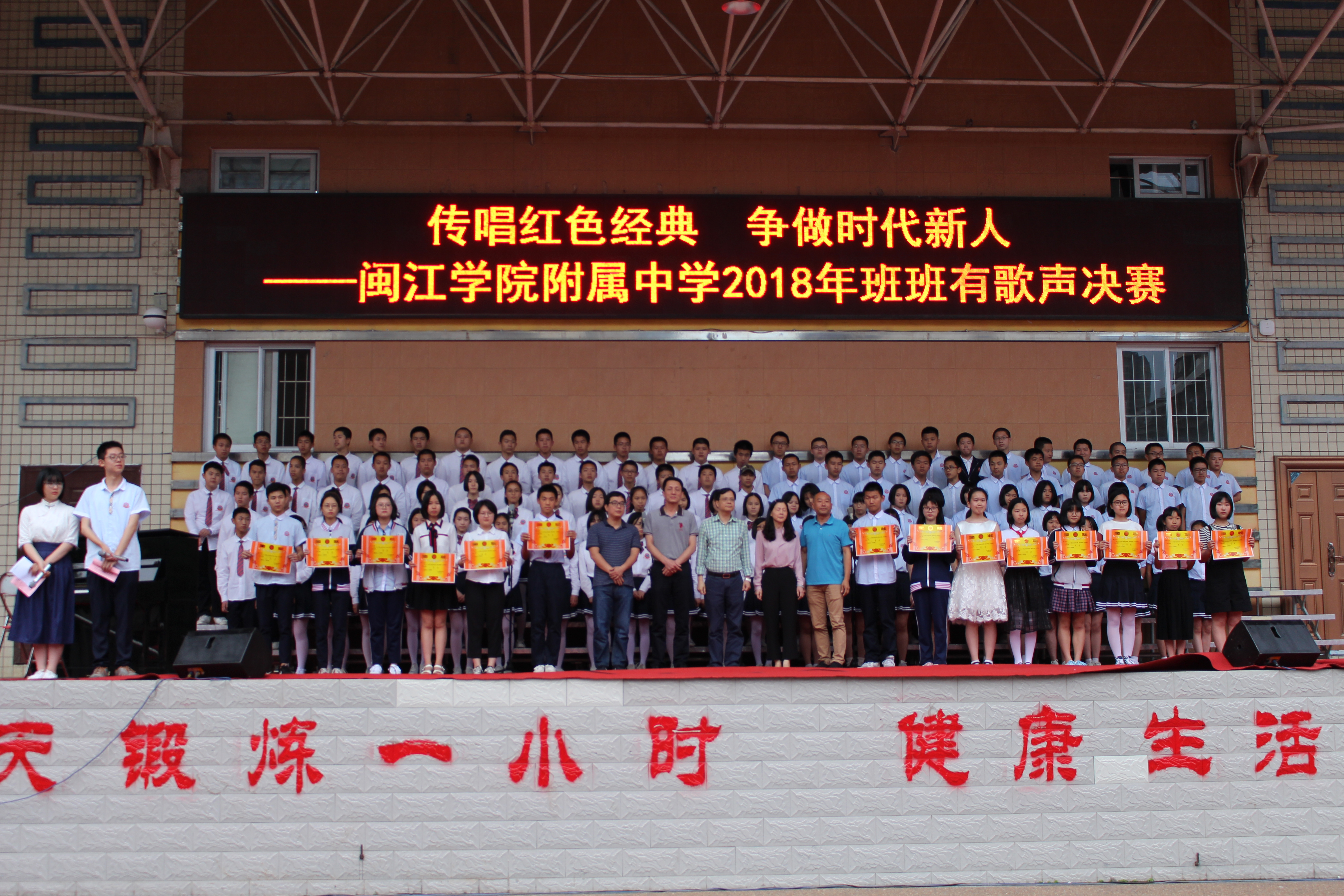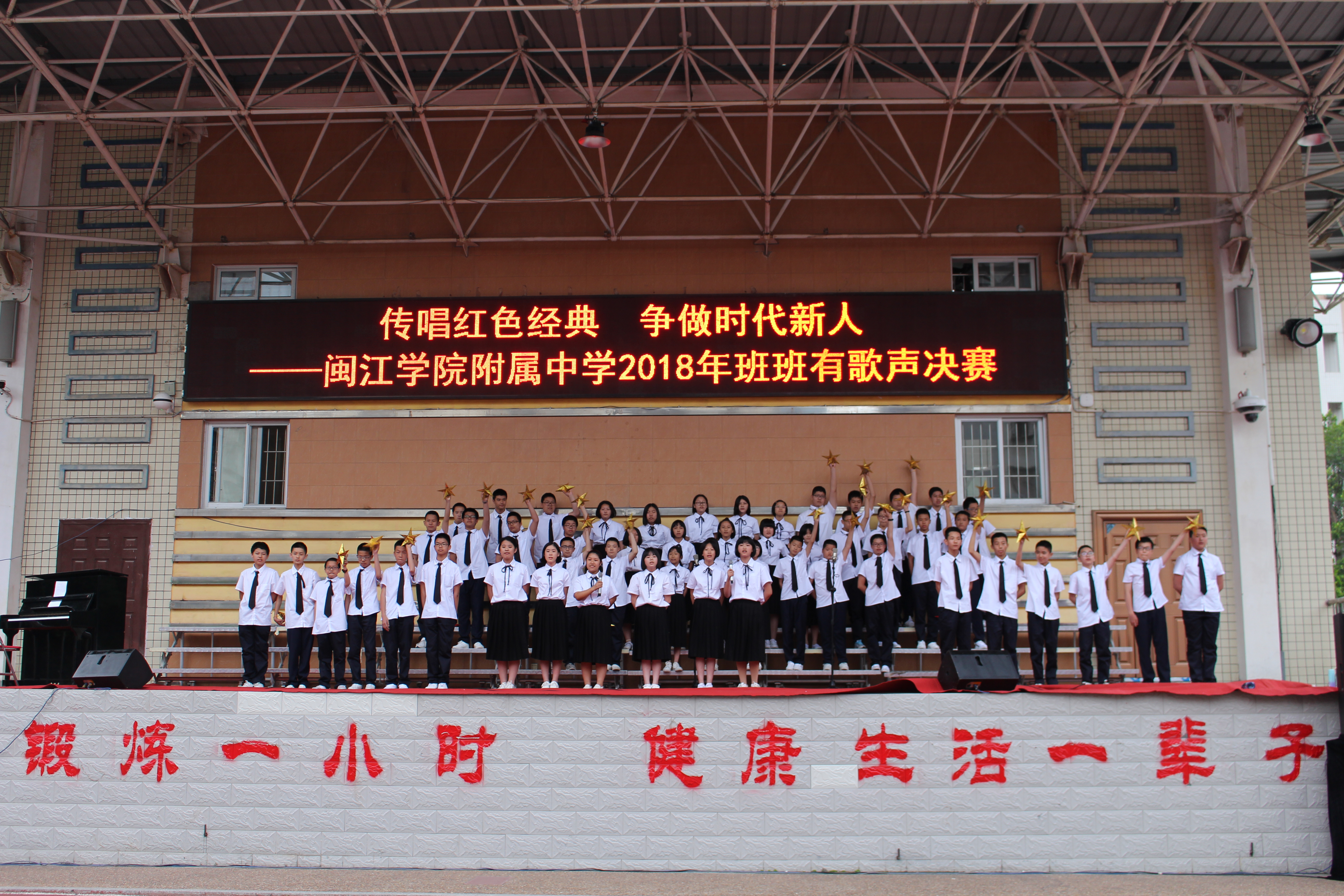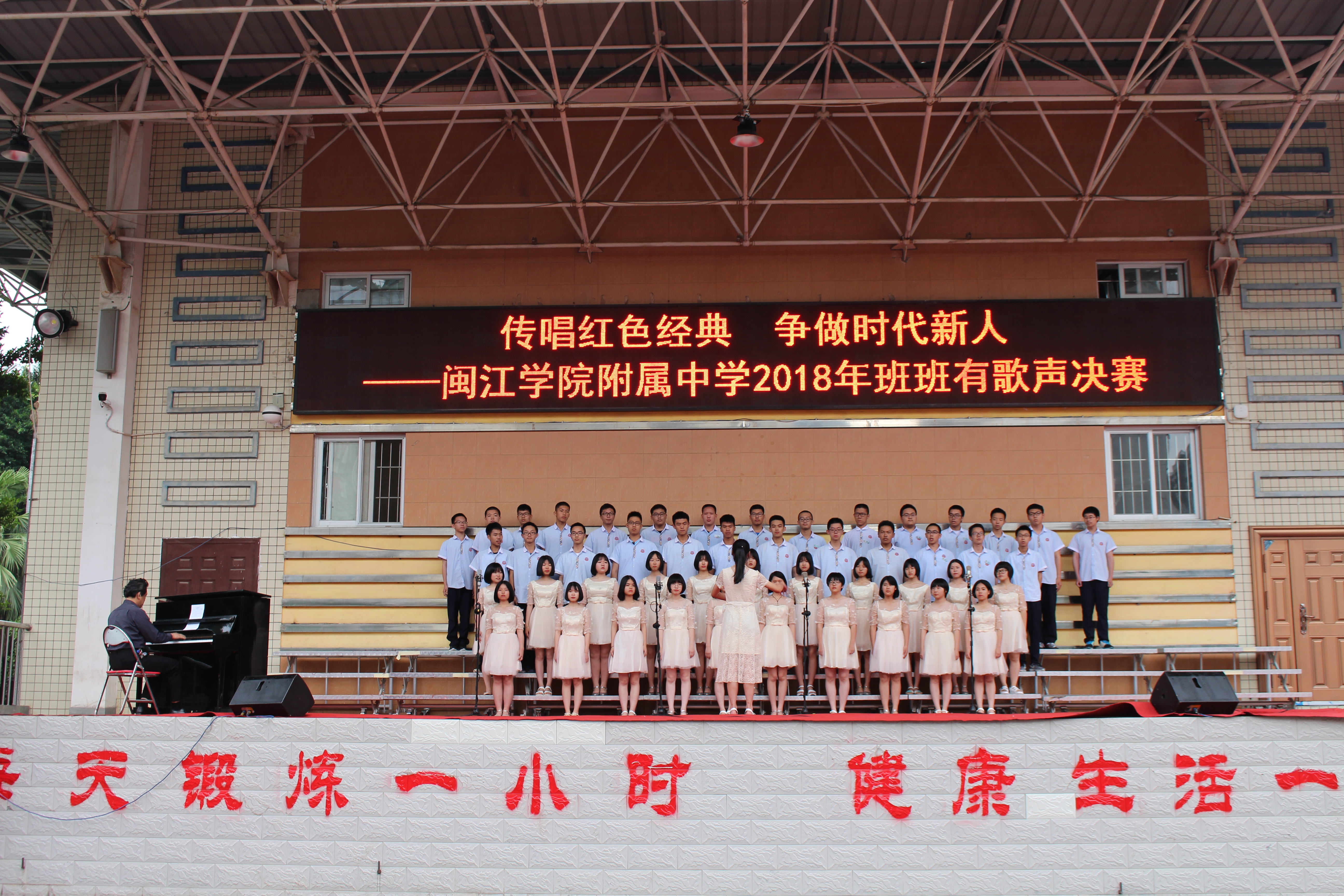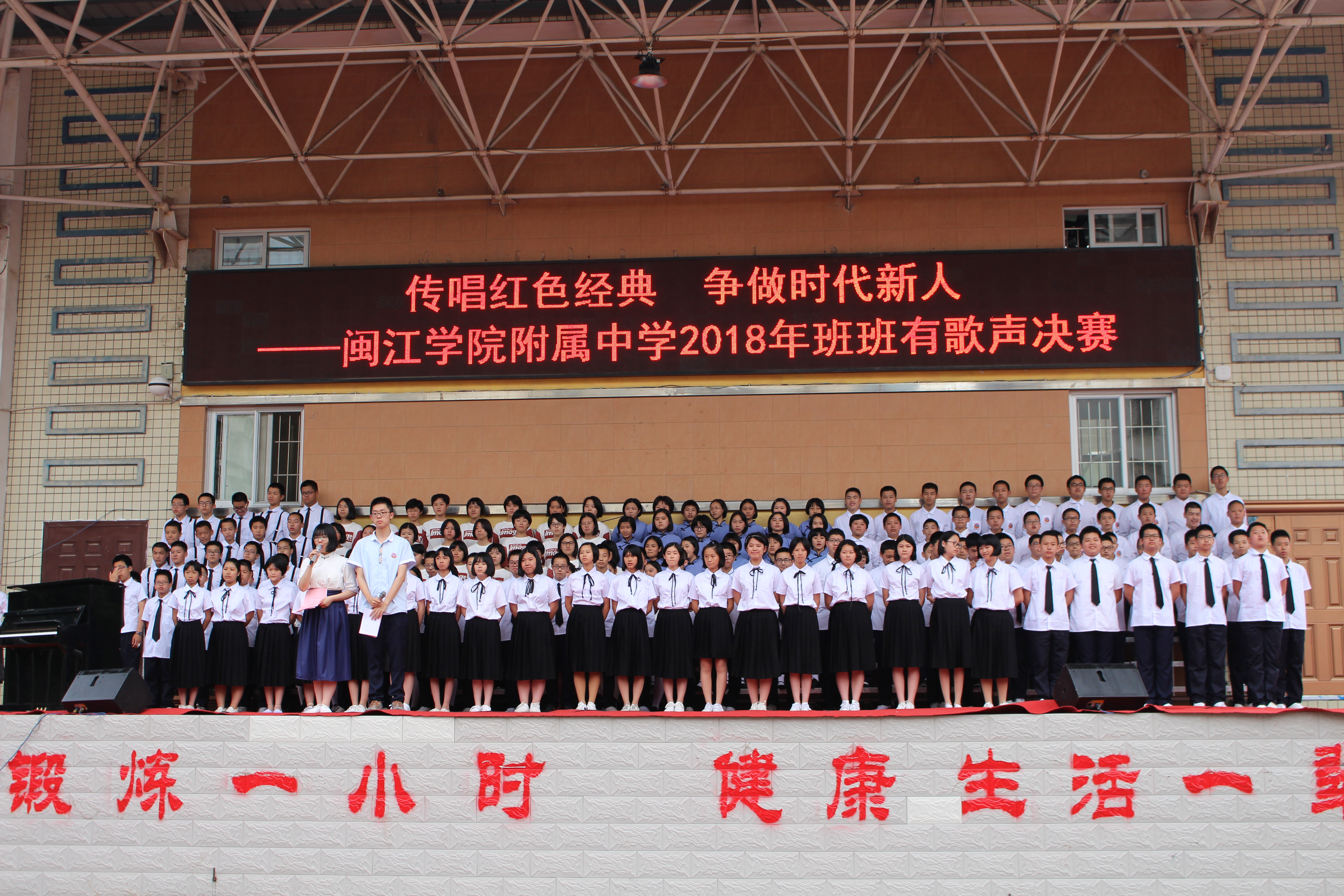 2018年5月10日下午,在我校的田径场举行了“传唱红色经典 争做时代新人”班班有歌声比赛的决赛活动。俞勇校长、谢海泓书记、刘旭光副校长、陈祁罕副校长、连宇副校长应邀观看了比赛。 经过紧张激烈的初赛,最后入围决赛的14个班级,为在场观众跟评委奉献出一场精彩的合唱比赛! 初一年段进入决赛的班级,合唱了一曲《学习雷锋好榜样》拉开了决赛的帷幕。本届班班有歌声比赛,各班级在选择曲目时突出红色经典,突出我校作为全国学雷锋示范点的特色。各班同学们以饱满的精神,动听的歌声唱出了对祖国、对雷锋、对校园的热爱。同学们以多彩的服装、多样的形式表现出对生活的热情,对雷锋精神的传承。各具特色的演出赢得评委、观众阵阵的掌声和欢呼声。 整场比赛,台上台下秩序井然,表现出我校学生一贯的良好风貌。这次的“班班有歌声”活动给师生们的校园生活增加了绚丽的色彩!同时也展示了我校学生良好的艺术素养。