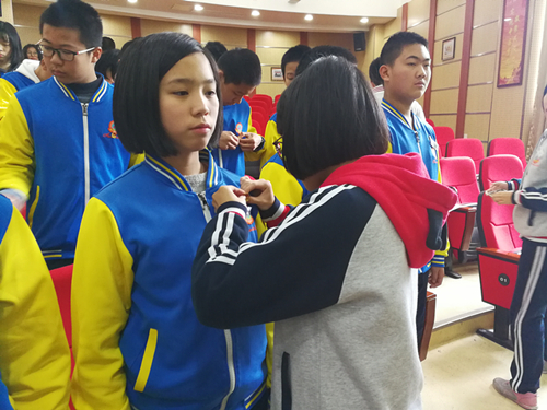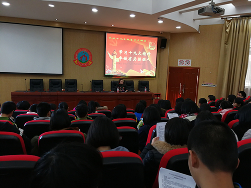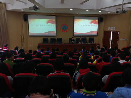 发表时间:2017-12-28 13:45 青春践行十九大 争做有为接班人 ——闽江学院附属中学2017-2018学年第一期团员入团 2017年 12月27日中午,“青春践行十九大 争做有为接班人” 2017——2018学年新团员入团仪式在综合楼报告厅举行。来自全校的新团员宣誓加入了中国共青团。我校党委谢海泓书记出席活动。大会由团委江如老师主持。 我校贯彻落实共青团改革要求,严格控制团员比例,这一批新团员都是经过层层推荐选拔,学习培训,参加团考合格的方可入团。我校团委开展了两次团课培训,为了做好团队衔接,选拔了部分优秀的少先队员参加此次团前学习。11月12号由我校学生会主席覃娜以“争做一名合格共青团员”为主题在报告厅开展。此次团课,学生会主席覃娜以五四运动为背景向同学们讲述了共青团的起源并联系现在讲述了共青团的发展。20号,我校团委江如老师开展了以“青春践行十九大 争做有为接班人”为主题的团课。本次团课主要传达了党的十九大的会议精神,着重强调了青年学生思想引领的核心内容和途径与方法。引领同学们在日后的学习道路中不忘初心,敬党爱党的同时,更激励同学们奋勇向前,成为国家栋梁之材。随后,团委安排了一次团考,检验新团员们这段时间对党的十九以及共青团相关知识的掌握程度。 在新团员嘹亮的国歌声中,入团仪式正式开始。主持人首先说明举行入团仪式的意义,并宣读新团员名单。出席活动的老团员为新团员代表佩戴团徽。随后,团委办公室林颖同学带领全体新团员在团旗下庄严宣誓。新团员代表号召全体新团员发扬共青团优良传统,保持昂扬的精神状态,在学习中明确目标,在生活中互帮互助,在工作中群策群力,时刻体现团员先进性,以实际行动践行自己的入团誓言。 我校党委谢海泓书记作了重要讲话。她向刚刚加入团组织的新团员表示热烈祝贺,希望广大共青团员走好三条路,第一学习之路(成长之路),第二奋斗之路(成才之路),第三追求之路(超越之路)。谢书记强调团员们要认真学习践行习近平总书记的要求,体现先进性,提升先进性,努力做合格的共青团员。 仪式在团歌《光荣啊,中国共青团》高昂的旋律中圆满结束。本次活动,不仅凝聚了我校团组织的力量,更增添了团员们创优争先的氛围。希望团员们能够通过努力当一名优秀的共青团员,带动身边的同学一起进步,不辜负老师的培养,成为一名优秀的党的接班人。