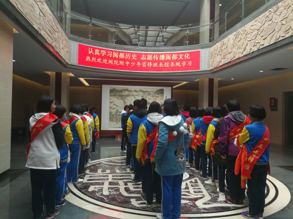 为了贯彻落实十九大精神和习近平总书记系列重要讲话精神,结合我校的实际,12月19日,德育处、团队组织带领雷锋班的师生志愿者走进福州市博物馆,近距离感受闽都文化历史底蕴,了解福州在一带一路中的重要地位,争做闽都文化的传播者。 出发前,刘旭光副校长对雷锋班的小雷锋做了动员讲话。刘副校长指出,走进博物院参观、学习,是重要的实践活动,是落实十九大精神的具体表现,作为雷锋班的小雷锋要在学习、实践十九大精神上当好排头兵,要以饱满的热情,认真的态度参加市博物馆的实践活动。