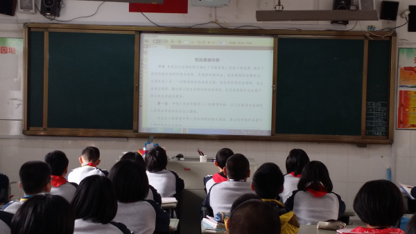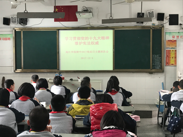 宪法日国旗下动员 除了早读、国旗下讲话,我校还采用了多种形式宣传宪法。如安排统一时间让同学们观看视频,学校宪法知识。