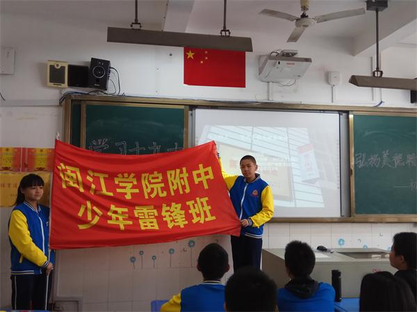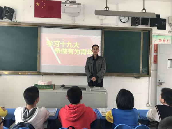 班主任郑岩泉老师做总结点评 一、初二年段各班以“学习十九大精神肩负历史使命”为主题,各班同学在老师指导下自制图文并茂的PPT,设计多种形式的互动环节,各班团支书当起了主持人,班会形式丰富多彩,课堂气氛异常活跃。 班会中,同学们先是通过问答环节了解了党的历史,接着大家你一言我一语地总结十九大的经典语录。同学们重温了社会主义核心价值观,围绕“中国梦﹒我的梦”话题畅谈梦想,构思未来。同学们畅所欲言,氛围热烈,将班会课推向了高潮。其中初二(8)班的同学在旗帜下宣誓,向着目标前进。初二(4)班同学学习十九大精神,班长寄语全班同学,号召全班同学在各方面“努力向上”。初二(1)班班主任号召全班同学,发扬雷锋班精神,争做有为青少年。美德班、励志班、奉献班各个不同的雷锋班级都结合自己特色进行了宣传教育。