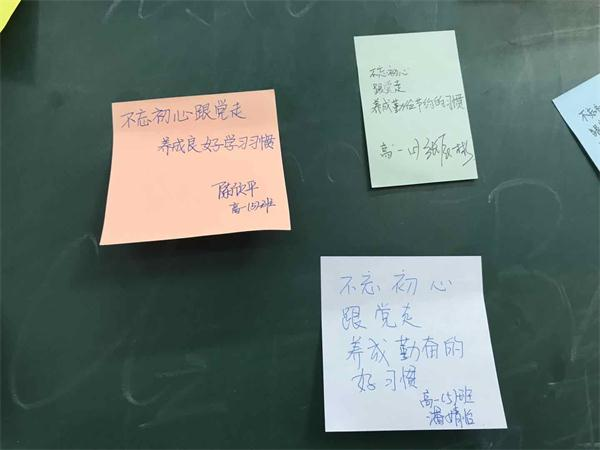 宣誓做文明有礼福州人 二、高一年段结合新生特点,开展“学习十九大精神系列活动之习惯养成”系列主题班会。有的班级通过学习十九大精神,喊出了“不忘初心,跟党走,养成好习惯”的心声;有的班级结合十九大精神和文明城市的创建,提出了“做文明有礼的福州人”的倡议;有的班级重温党史,加深认识;还有的班级提出了更高的要求,学习十九大,潜心做学问,做优秀接班人。高一年段各班通过班主任带领学生认真细致的学习十九大精神,让学生懂得学以致用,懂得关心时事,懂得关注时局,做一个有理想信念的追梦人。 通过此次班会,各年段同学们纷纷表示作为新时代的中学生,要明确自己肩上的责任和义务,端正学习态度,为实现中国梦,不断改进学习方法和技巧,在今后的学习中,不忘初心,牢记使命,在学习和生活中,真正践行十九大的精神,把精神落到实处。 各年段将解决思想问题与解决实际问题结合起来,在春风化雨、润物无声中宣传党的十九大精神,不断提高学习宣传教育的亲和力和针对性。通过周密部署、统筹安排,落实十九大精神进学科、进课程的要求,做到班班讲、人人懂,实现班级全覆盖。党委将引导师生将学习延伸到课外,边学边做,用十九大精神指导实践工作、学习。