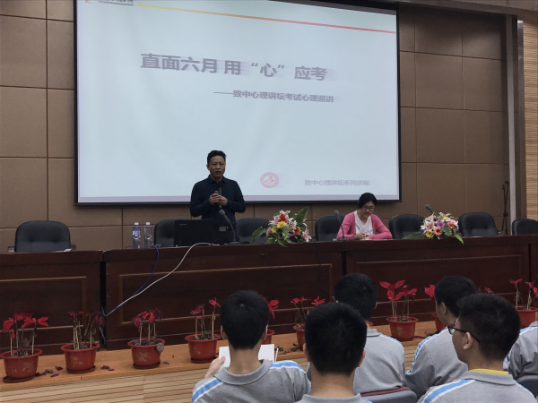 发表时间:2017-04-20 14:05 闽江学院附中2017届高三考前心理讲座 在距离2017年高考49天之际,我校在正兴楼多功能厅举行了“2017届高三考前心理辅导讲座”,特邀心理专家林瑞龙老师为我校高三师生做高考心理辅导讲座,师生们反响热烈。 林瑞龙老师一开口,就问学生们“累不累啊?”,瞬间让全场学生敞开了心扉,像是得到了充分的理解,一下子拉近了和专家之间的距离,现场的气氛顿时热烈起来。讲座过程中,林老师用一个个生动的例子,把高考前学生们常见的生理反应、情绪反应、行为反应,一一展现出来,语言幽默,表情生动,让学生们有如遇知音之感,道出了学生们的心声,更让学生们发现,原来这些反应都是常见的,自己并不是个例,从而减少了一些焦虑。 针对考前的各种心理状态,林老师给考生们归纳了自我调适的几个策略。首先,合理诠释考试的重要性,站在人生的高度分析高考;其次,客观评价自己的学习状态,知己知彼才能百战百胜;再次,针对“高原反应”、考场状态、温书假的安排,林老师也提出了几种非常实用、可操作的调适方法。最后,林老师用20分钟的时间与学生互动提问,学生们反应热烈,有现场提问的,也有写纸条提问的,一叠提问小纸条聚在讲台上,短短20分钟让大家意犹未尽。 讲座结束后,我校心理老师刘丽洁老师通过PPT投影,将福州市未成年人心理辅导的24小时热线电话、学校“开心吧”心理辅导室的联系方式等告知学生,建议同学们将讲座中的宝贵收获运用到复习迎考中,若遇到需要解决的心理困扰,可以通过上述的多种渠道进行求助。 本次2017届高三考前心理辅导讲座取的圆满成功,祝愿我校2017届高三考生在高考中考出自己理想的成绩!