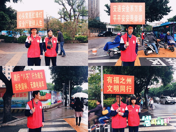 发表时间:2017-01-20 14:19 大寒时节中的温暖闽附红 ——闽江学院附中党团队员开展志愿服务活动 2017年1月20日,温度6oC,正值大寒节气,几乎是一年里最冷的时候,但闽院附中的党团队员们却在这一天,穿上了红色志愿者马甲,走进社区、走向街头、走进地铁,开展了一系列志愿服务活动,在寒冷的天气里为榕城送上了温暖的“闽附红”。 上午9时,闭学式刚结束,江如老师带领志愿者走进常年联系的乐天泉社区,为独居老人送去了慰问品,为他们做卫生、贴春联,还参加了普法进社区志愿宣传活动。 同一时刻,陈美婷老师带领志愿者来到繁忙的六一路和群众路交界路口,进行“践行八不行为规范”和交通文明宣传,帮助警辅人员疏导交通。 下午16时30分,由校党委委员、副校长陈祁罕带队,在支部委员曾毓平和张杰老师的带领下,第三支部全体党员教师和10余名学生志愿者来到地铁茶亭站和屏山站,在接受了地铁工作人员的培训后,开展了人流引导、指导使用自助购票机、乘车咨询等志愿服务。 明天上午,闽院附中的小书法家们还会来到鼓楼遗址公园,参加市教育系统义务写春联志愿服务活动,他们的充满墨香的作品将被陌生的市民们领走,为春节增加一缕传统的年味。 这个寒假,我校的志愿者们还将立足各自的社区,分散行动,开展力所能及的志愿服务活动,为美丽的福州蓝增添一抹抹亮丽的“闽附红”。 作为全省学雷锋活动示范点,闽江学院附中的师生志愿者将在各级领导的正确引领下,将我们朝气蓬勃、积极向上、乐于助人的良好形象带出校园,带进社会。