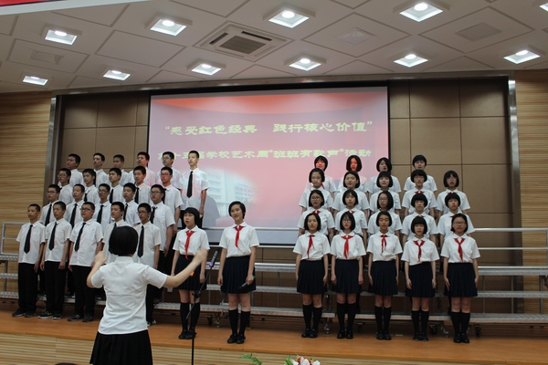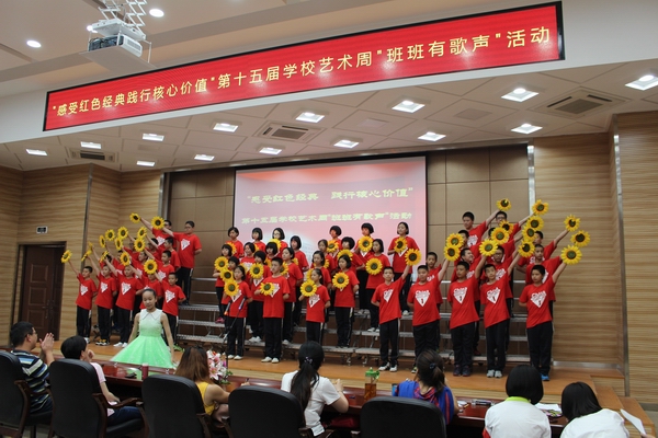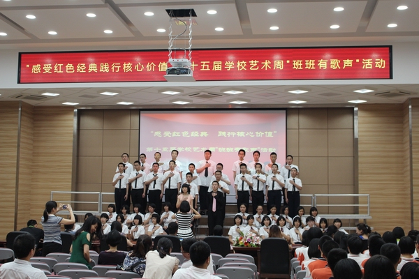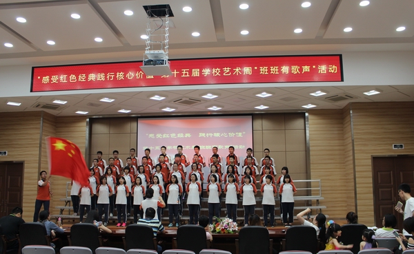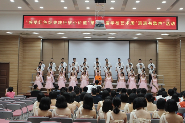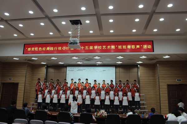 发表时间:2016-06-01 14:40 “感受红色经典 践行核心价值” ——第十五届学校艺术周“班班有歌声”活动 为培养学生感受美、表现美、鉴赏美、创造美的能力。进一步活跃校园文化,丰富学生的艺术生活,从而提高学生的审美和人文素养,促进学生健康成长。2016年,我校以“中国梦”为主旋律,以庆祝建党95周年、红军长征胜利80周年为契机,以“感受红色经典.践行核心价值”为主题,开展第十五届学校艺术周“班班有歌声”活动,着力营造健康高雅的校园文化环境,反映当代学生热爱党、热爱祖国、热爱家乡的精神风貌。 从5月份开始筹备前期工作,学校领导给予了十足的关心和关注。由德育处向各班级推荐曲目,由音乐老师、班主任组织各班利用班会课时间、音乐课、课外活动课时间,以班级为单位组织演唱歌曲。 5月31日,我校在多功能厅举行了“班班有歌声”决赛。在各年段预赛的基础上,共有9个班级进入决赛。各个参赛班级阵容整齐,精神抖擞。在合唱的基础上,各班各显神通,根据本班的具体情况,融入器乐、舞蹈、朗诵等,服装道具各异,可见同学和班主任创意十足,十分用心。整场比赛各班级声音洪亮,歌声动听,演唱的歌曲主题鲜明,体现了新时代少年的精神面貌。在经过激烈的角逐后,分别决出了一等奖,二等奖和三等奖。 此次活动充分展示了学生生动活泼,健康向上的精神风貌。演唱风格把握得当、精神面貌良好、班级秩序井然。使学生在体验艺术美的同时,也增强学生的爱党、爱国、爱学校的感情。 附获奖名单: 一等奖:初二(5)、高一(2)、高一(7) 二等奖:初二(1)、初二(3)、初一(2) 三等奖:初一(8)、高一(4)、初一(6)