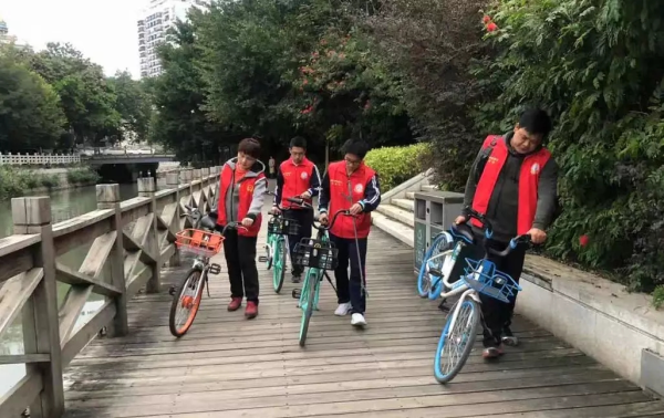 琼东河栈道是学校重要周边之一。为进一步提升周边群众爱河护绿意识,清除栈道生活垃圾,整齐摆放共享单车,我校党员志愿者、七彩虹志愿者与乐天泉社区志愿者一起来到琼东河栈道,携手清理栈道沿途中的生活垃圾,整理共享单车,营造整洁有序的周边环境。