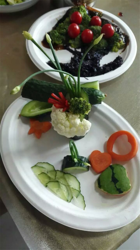 三位老师利用业余时间进行了简单的练习,富有创意地制作了各种水果拼盘,比赛中她们协调配合,切、削、摆、拼,在有限的时间内完成作品《童话》,获得了评委们的好评。
